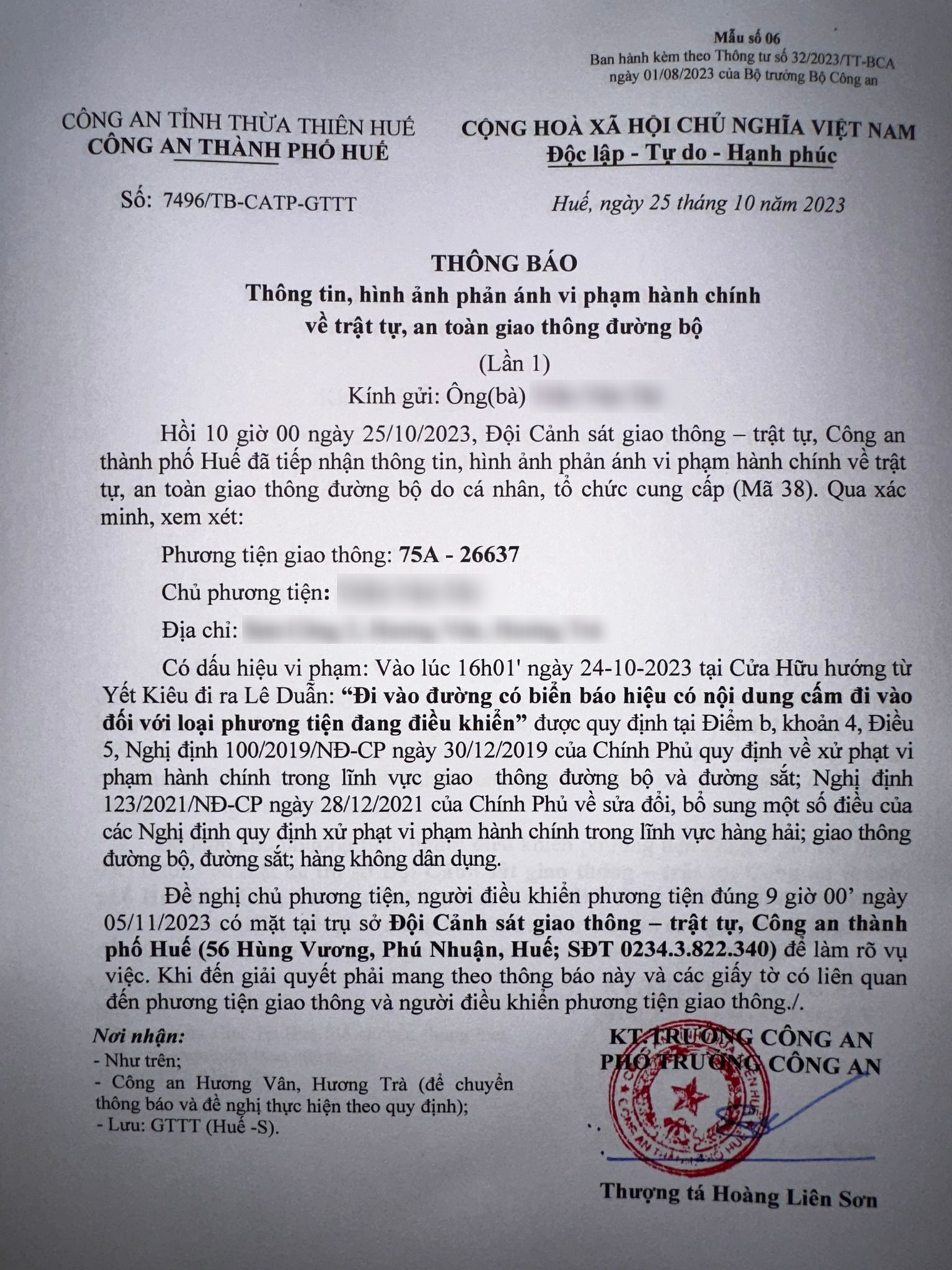 Vấn đề quý Ông/Bà phản ánh, Công an tỉnh đã chỉ đạo Công an thành phố Huế kiểm tra và xin thông báo kết quả như sau: