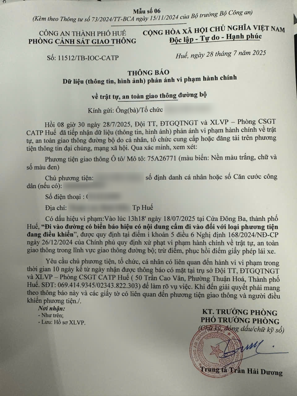 Vấn đề quý Ông/Bà phản ánh, Phòng Cảnh sát giao thông – Công an thành phố Huế đã kiểm tra và xin thông báo kết quả như sau: