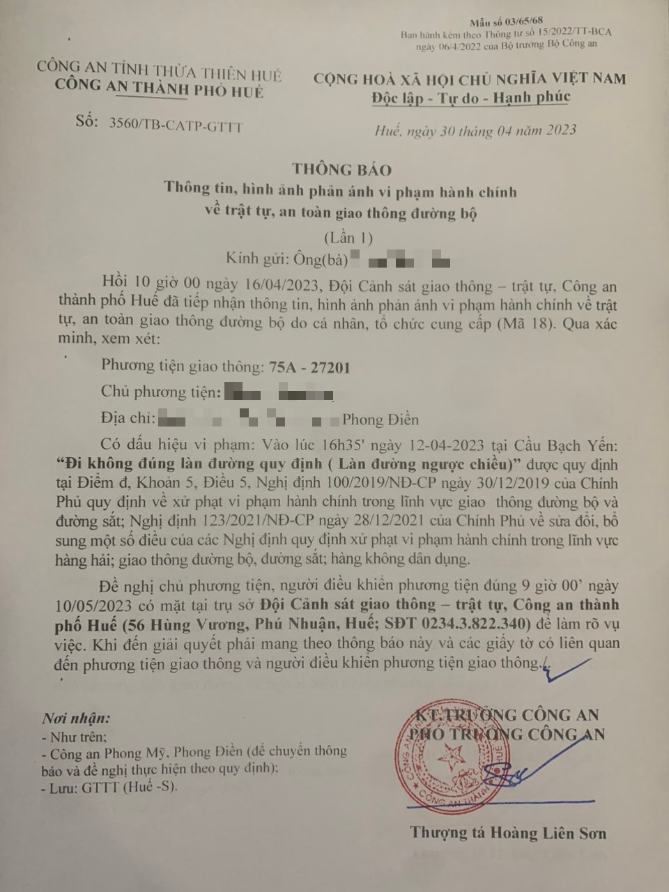 Vấn đề quý Ông/Bà phản ánh, Công an tỉnh đã chỉ đạo Công an thành phố Huế kiểm tra và xin thông báo kết quả xử lý như sau: