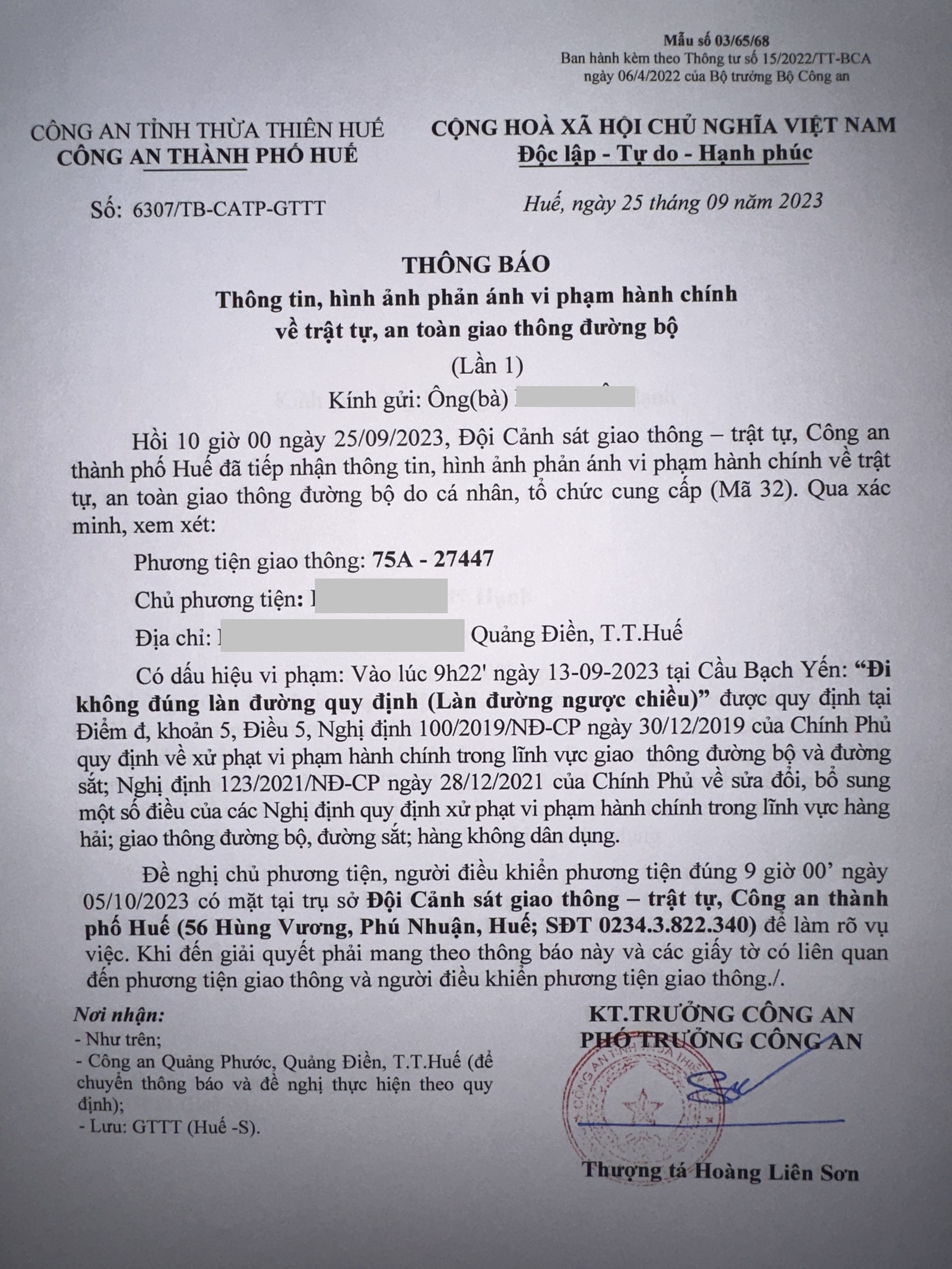 Vấn đề quý Ông/Bà phản ánh, Công an tỉnh đã chỉ đạo Công an thành phố Huế kiểm tra và xin thông báo kết quả như sau: