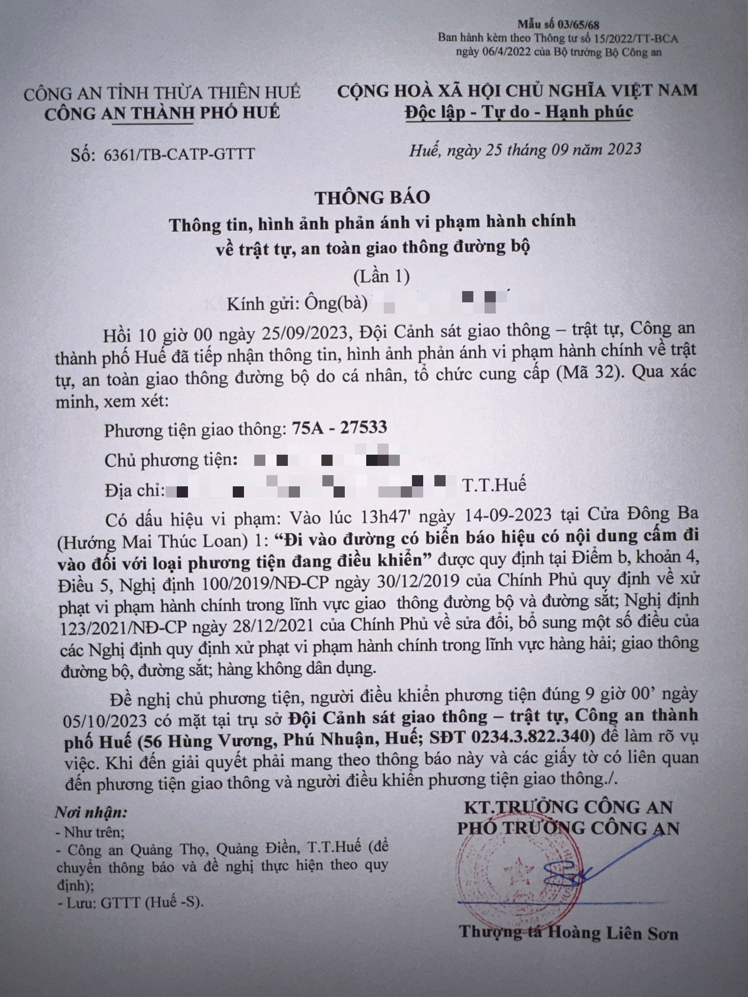 Vấn đề quý Ông/Bà phản ánh, Công an tỉnh đã chỉ đạo Công an thành phố Huế xác minh và xin thông báo kết quả như sau: