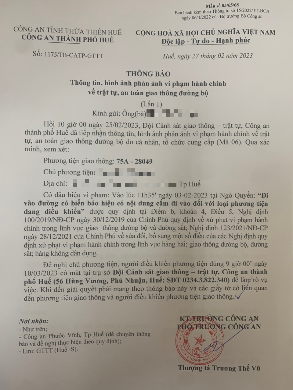 Vấn đề Ông/Bà phản ánh, Công an tỉnh đã chỉ đạo Công an thành phố Huế xin thông báo kết quả xử lý như sau: