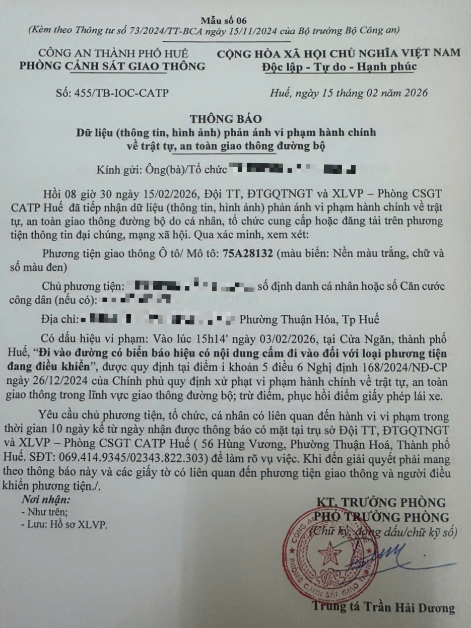 Vấn đề quý Ông/Bà phản ánh, Phòng Cảnh sát giao thông – Công an thành phố Huế đã kiểm tra và xin thông báo kết quả như sau: