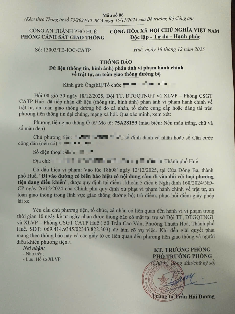 Vấn đề quý Ông/Bà phản ánh, Phòng Cảnh sát giao thông – Công an thành phố Huế đã kiểm tra và xin thông báo kết quả như sau: