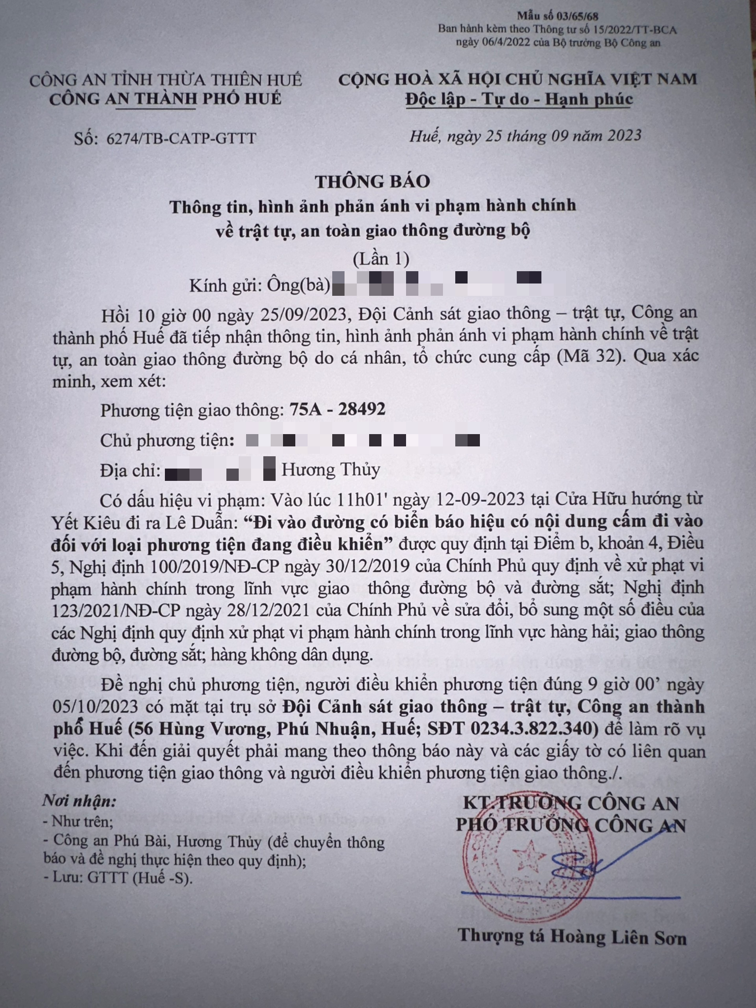 Vấn đề Ông/Bà phản ánh, Công an tỉnh đã chỉ đạo Công an thành phố Huế xác minh và xin thông báo kết quả như sau: