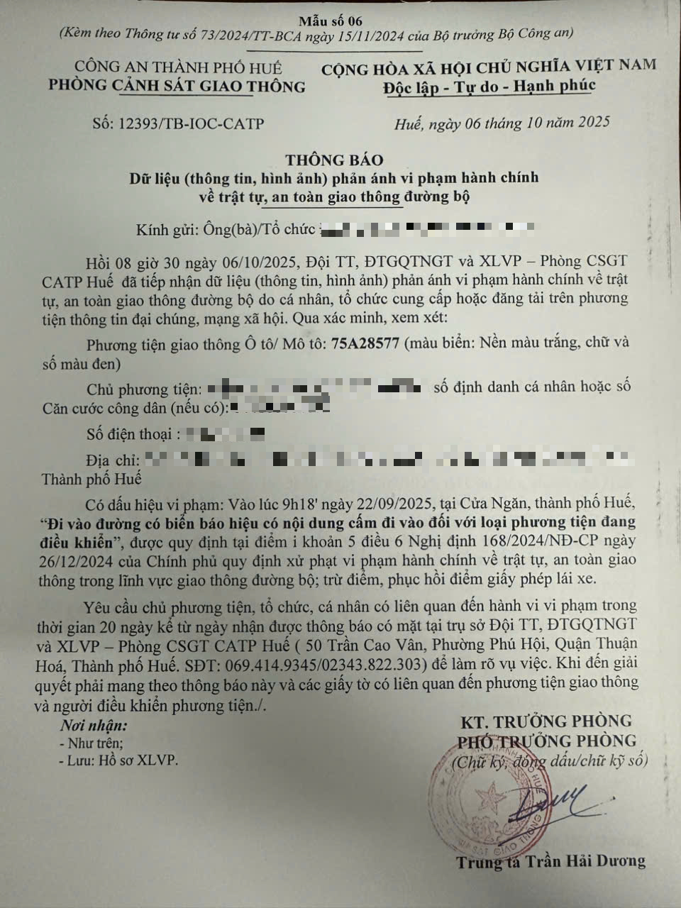 Vấn đề quý Ông/Bà phản ánh, Phòng Cảnh sát giao thông – Công an thành phố Huế đã kiểm tra và xin thông báo kết quả như sau:
