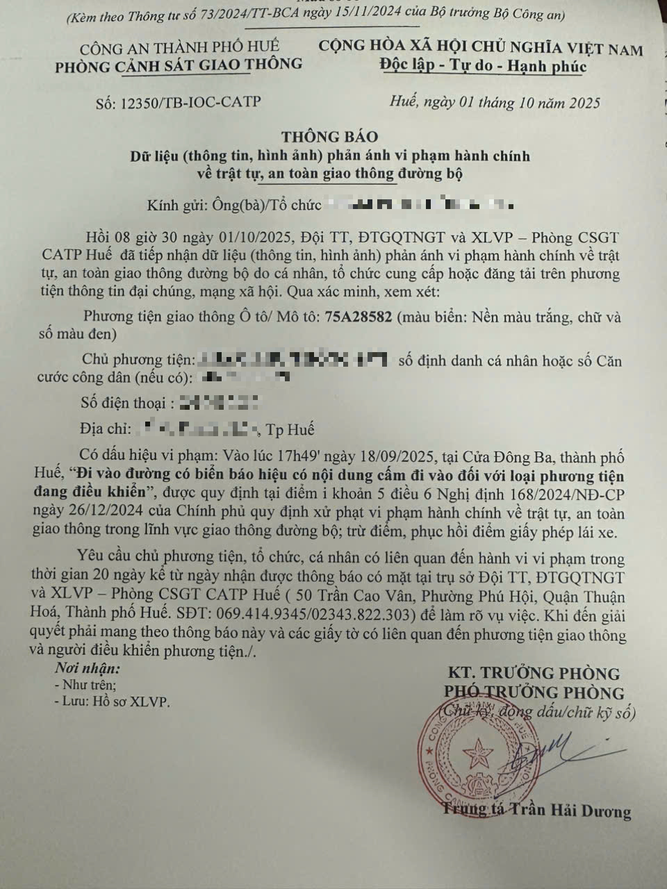 Vấn đề quý Ông/Bà phản ánh, Phòng Cảnh sát giao thông – Công an thành phố Huế đã kiểm tra và xin thông báo kết quả như sau:
