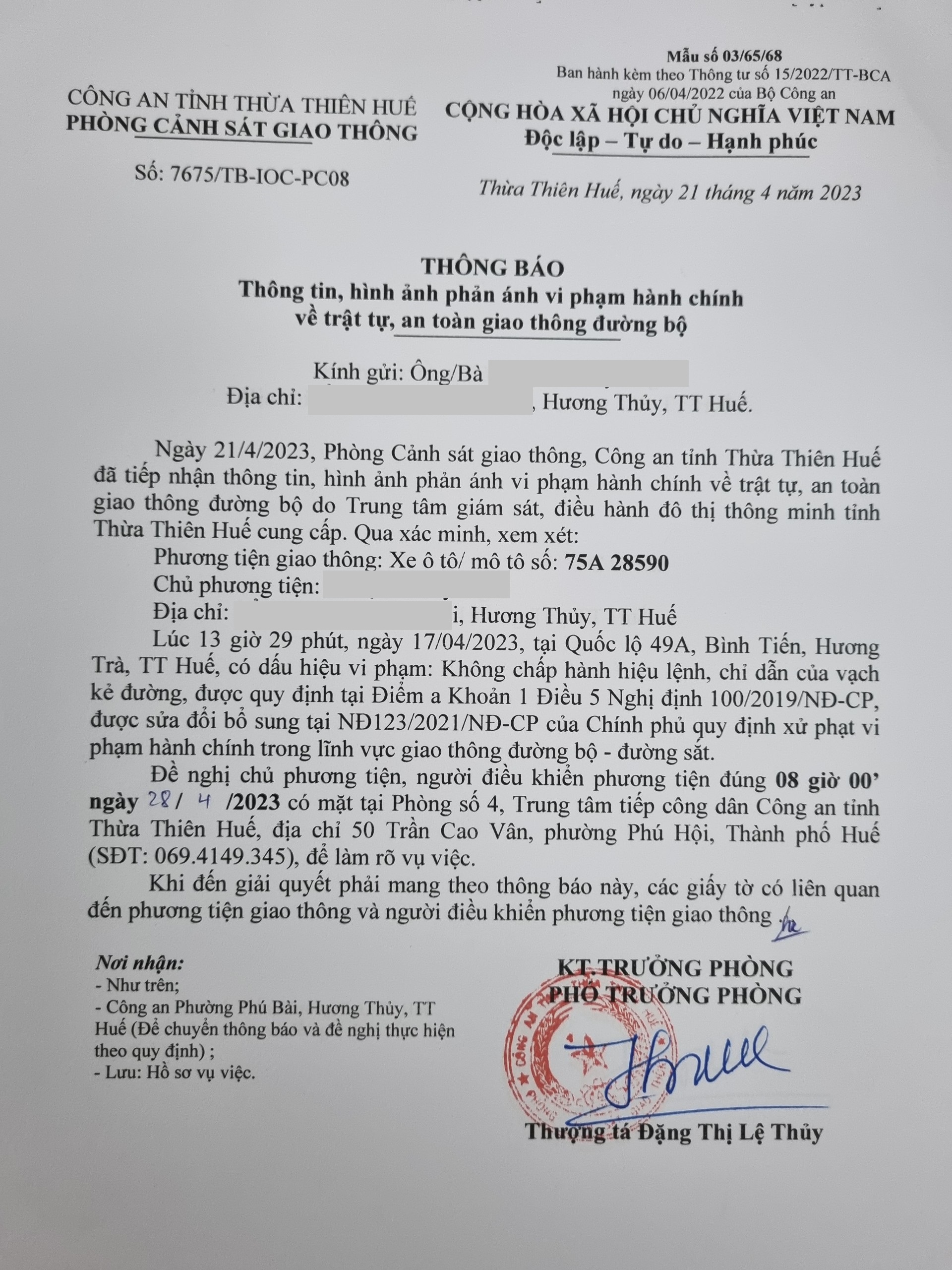 Vấn đề Ông/Bà phản ánh, Công an tỉnh đã chỉ đạo Phòng Cảnh sát giao thông kiểm tra và xin thông báo kết quả xử lý như sau: