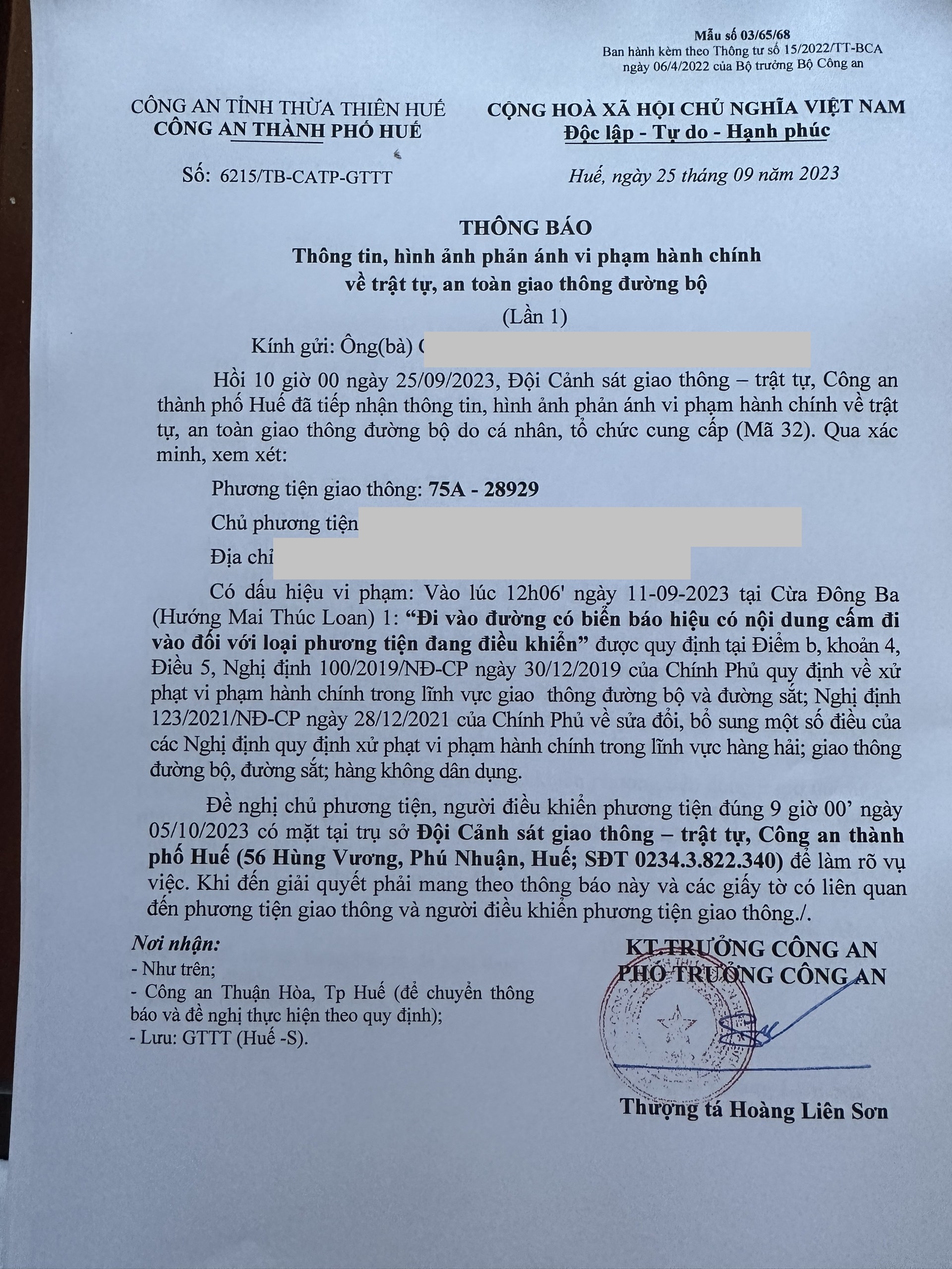 Vấn đề Ông/Bà phản ánh, Công an tỉnh đã chỉ đạo Công an thành phố Huế xác minh và xin thông báo kết quả như sau: