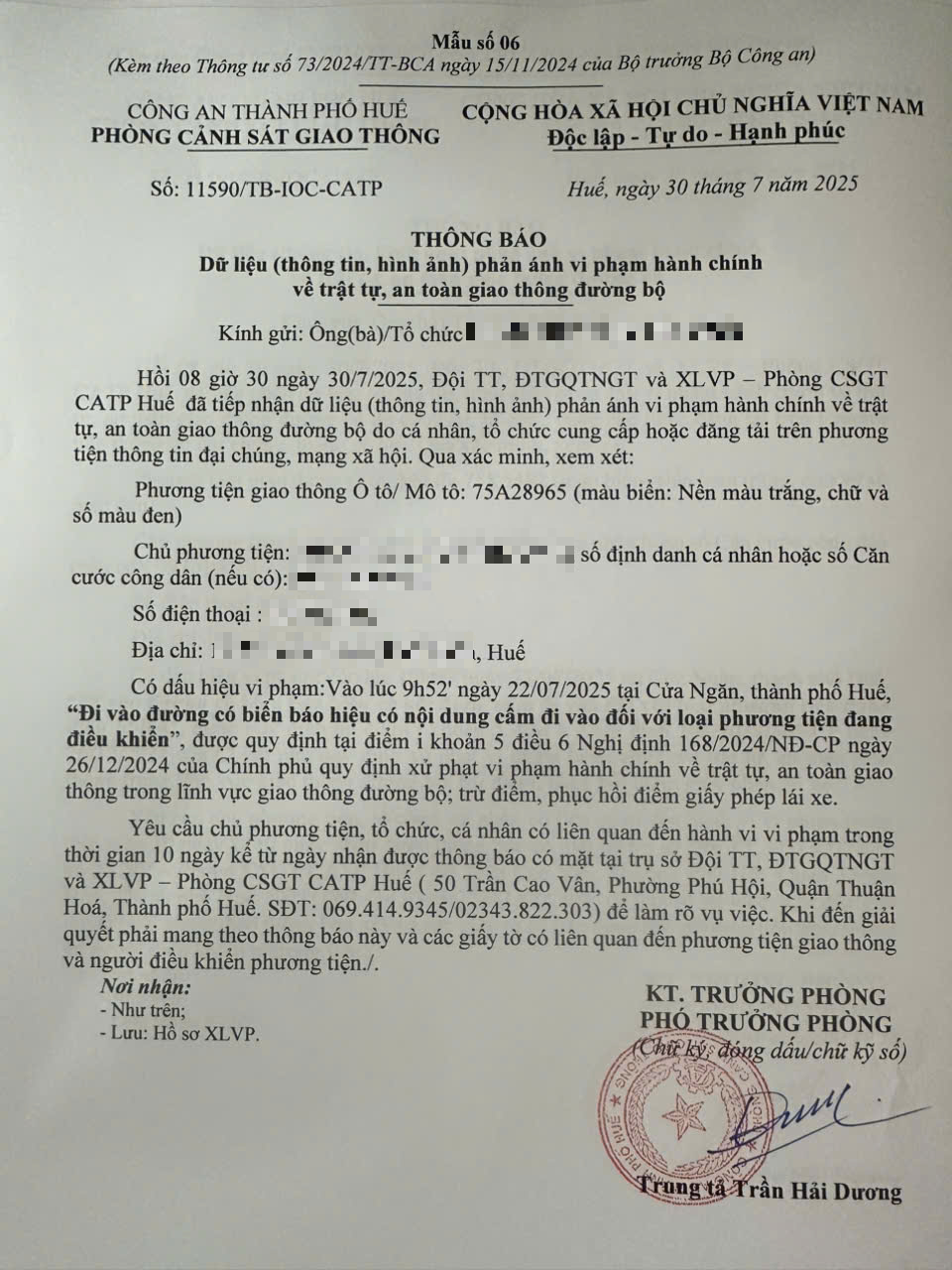 Vấn đề quý Ông/Bà phản ánh, Phòng Cảnh sát giao thông – Công an thành phố Huế đã kiểm tra và xin thông báo kết quả như sau: