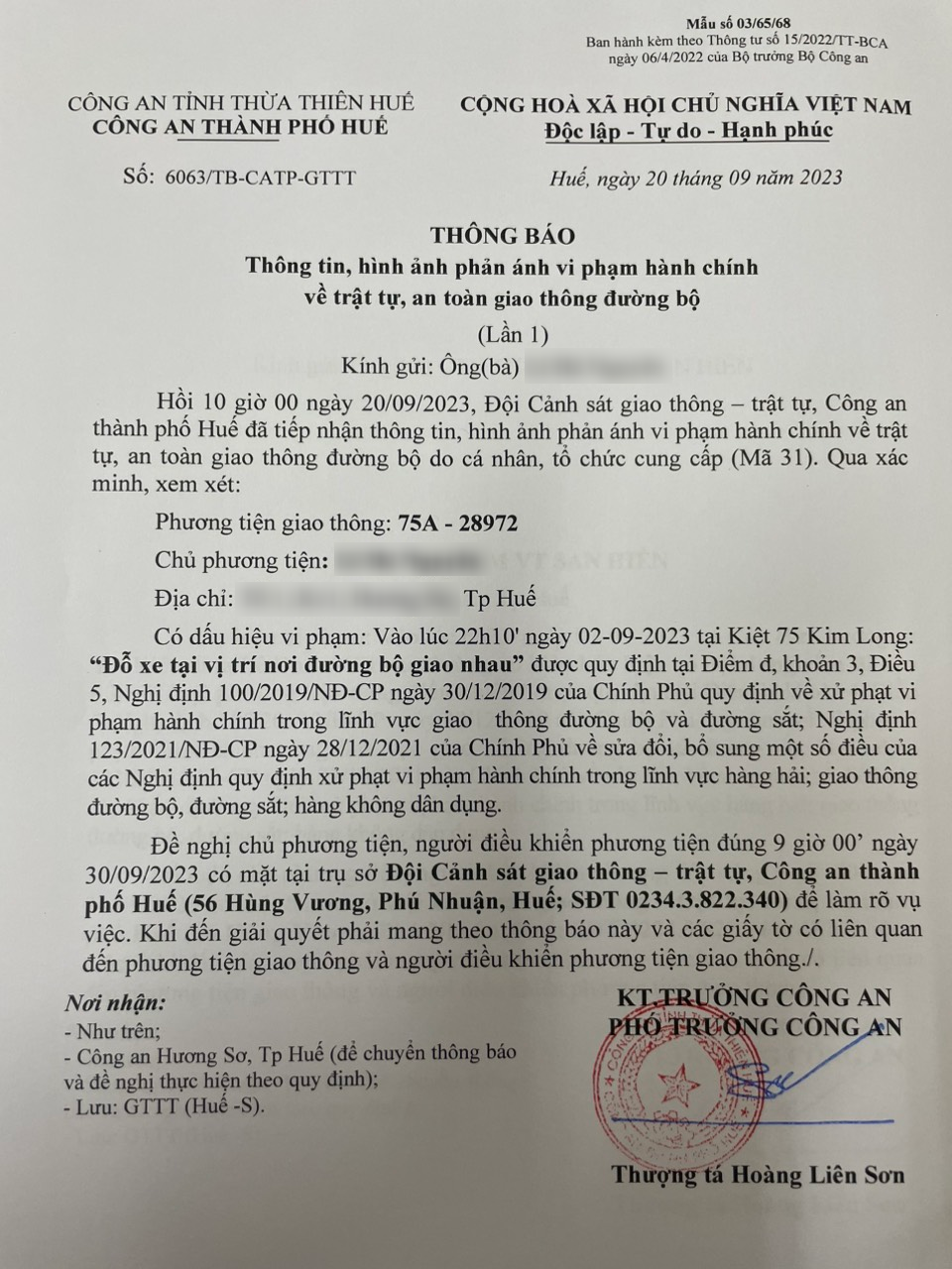 Vấn đề Ông/Bà phản ánh, Công an tỉnh đã chỉ đạo Công an thành phố Huế xin thông báo kết quả xử lý như sau: