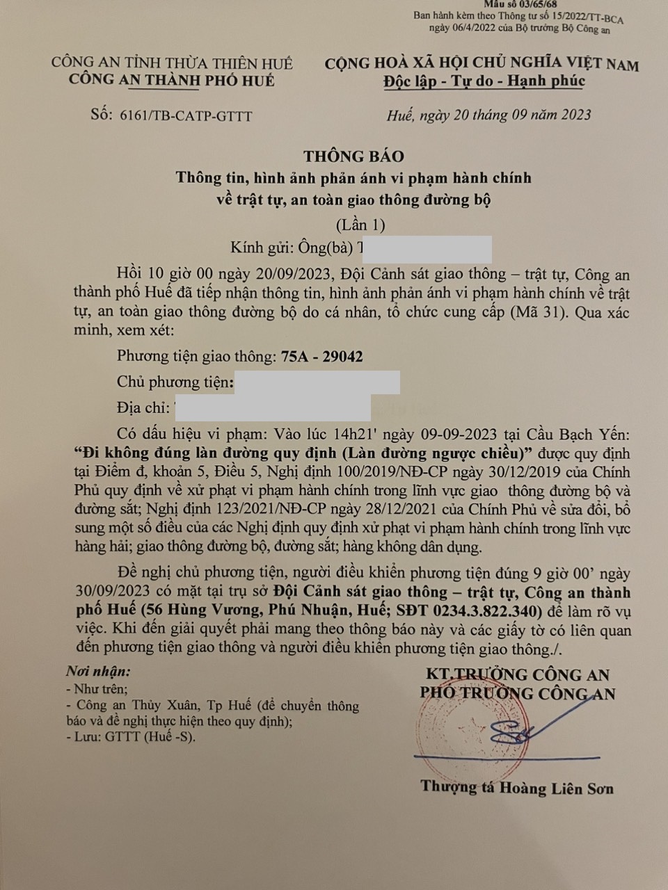 Công an thành phố cập nhật kết quả: Qua xác minh làm việc với chủ phương tiện vi phạm lỗi: Không chấp hành hiệu lệnh, chỉ dẫn của vạch kẻ đường, quy định tại điểm a, khoản 1, điều 5 Nghị định 100/2019/NĐ-CP được sửa đổi, bổ sung tại Nghị định 123/NĐ-CP ngày 28/12/2021. Ra Quyết định xử phạt 350.000đ. (Đính kèm Quyết định)