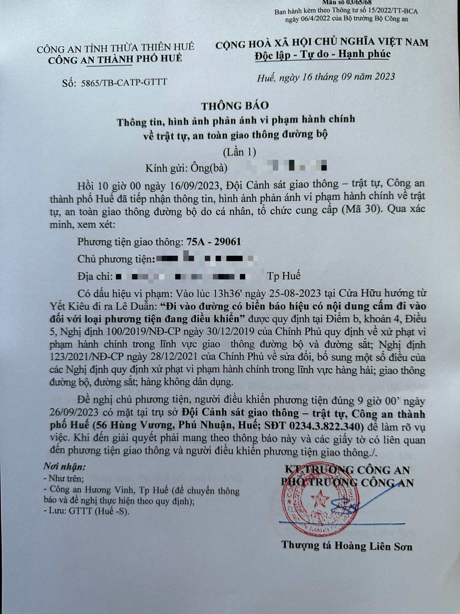 Vấn đề quý Ông/Bà phản ánh, Công an tỉnh đã chỉ đạo Công an thành phố Huế kiểm tra và xin thông báo kết quả xử lý như sau: