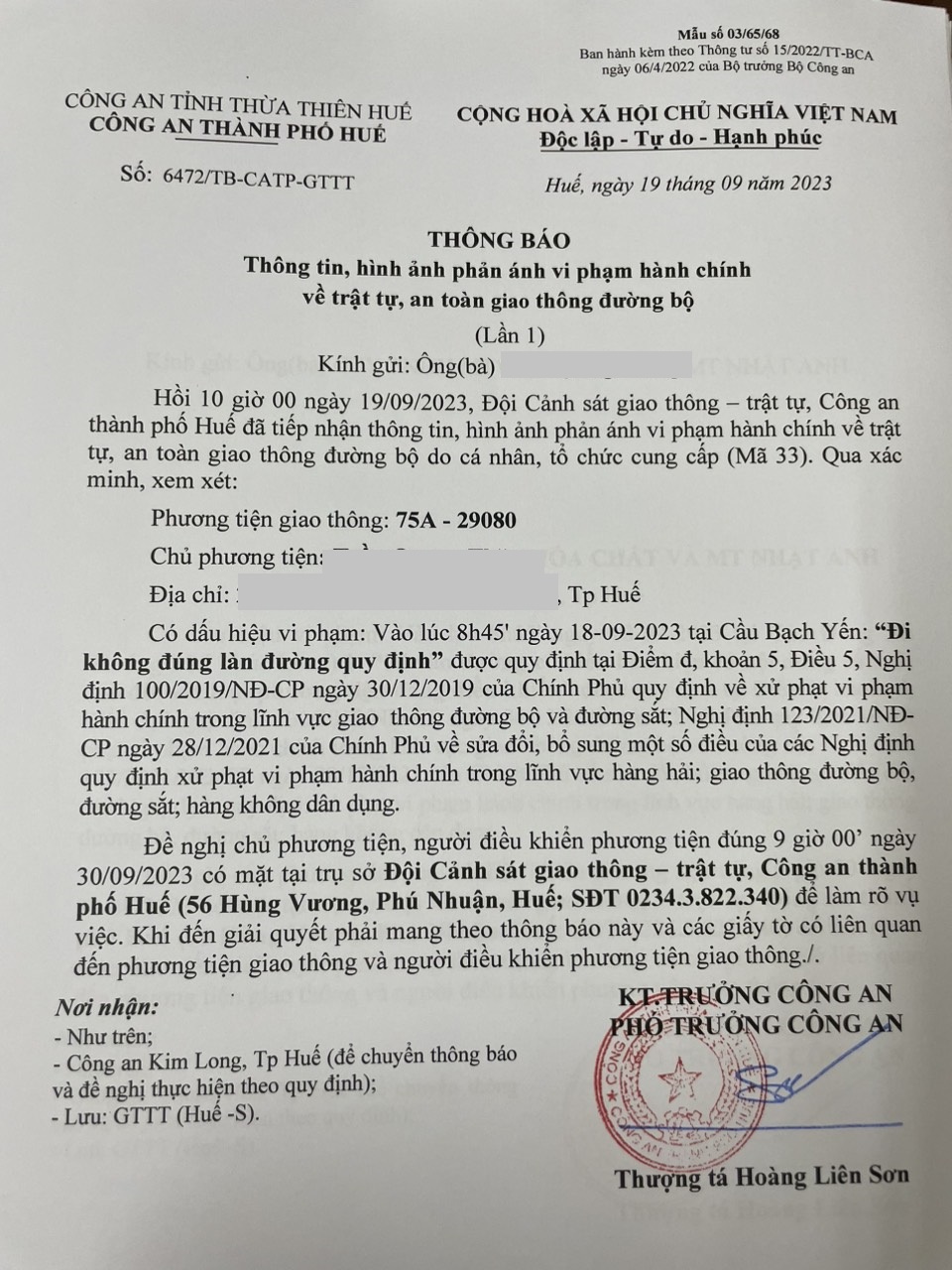 Vấn đề Ông/Bà phản ánh, Công an tỉnh đã chỉ đạo Công an thành phố Huế kiểm tra và xin thông báo kết quả như sau: