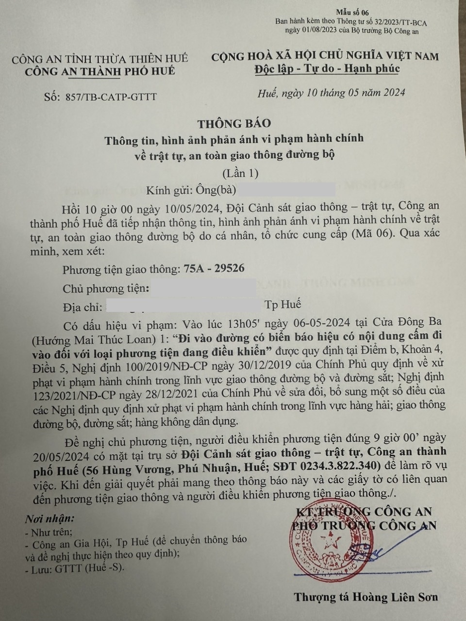 Vấn đề quý Ông/Bà phản ánh, Công an tỉnh đã chỉ đạo Công an thành phố Huế xác minh và xin thông báo kết quả như sau: