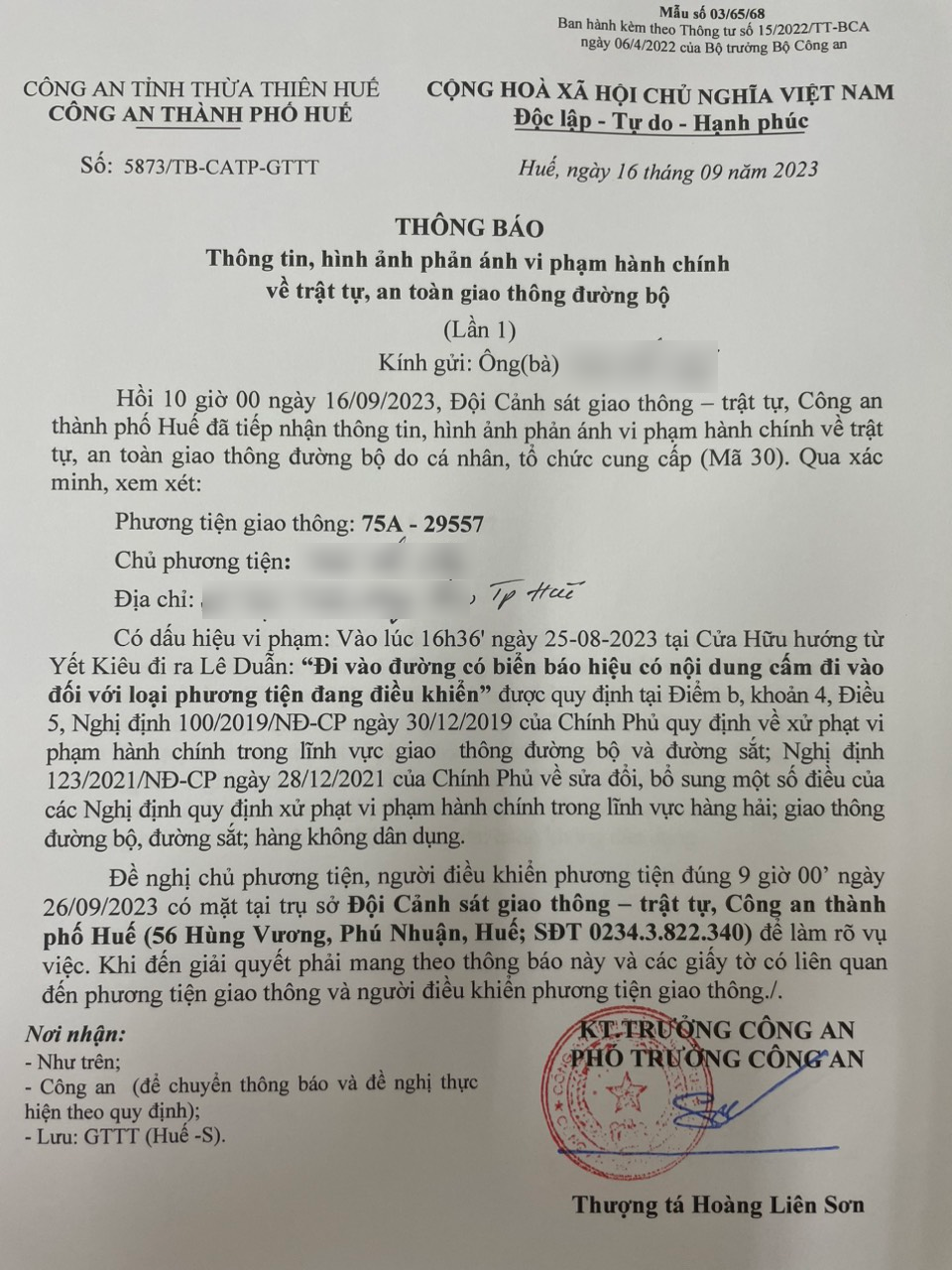 Vấn đề quý Ông/Bà phản ánh, Công an tỉnh đã chỉ đạo Công an thành phố Huế xác minh và xin thông báo kết quả như sau: