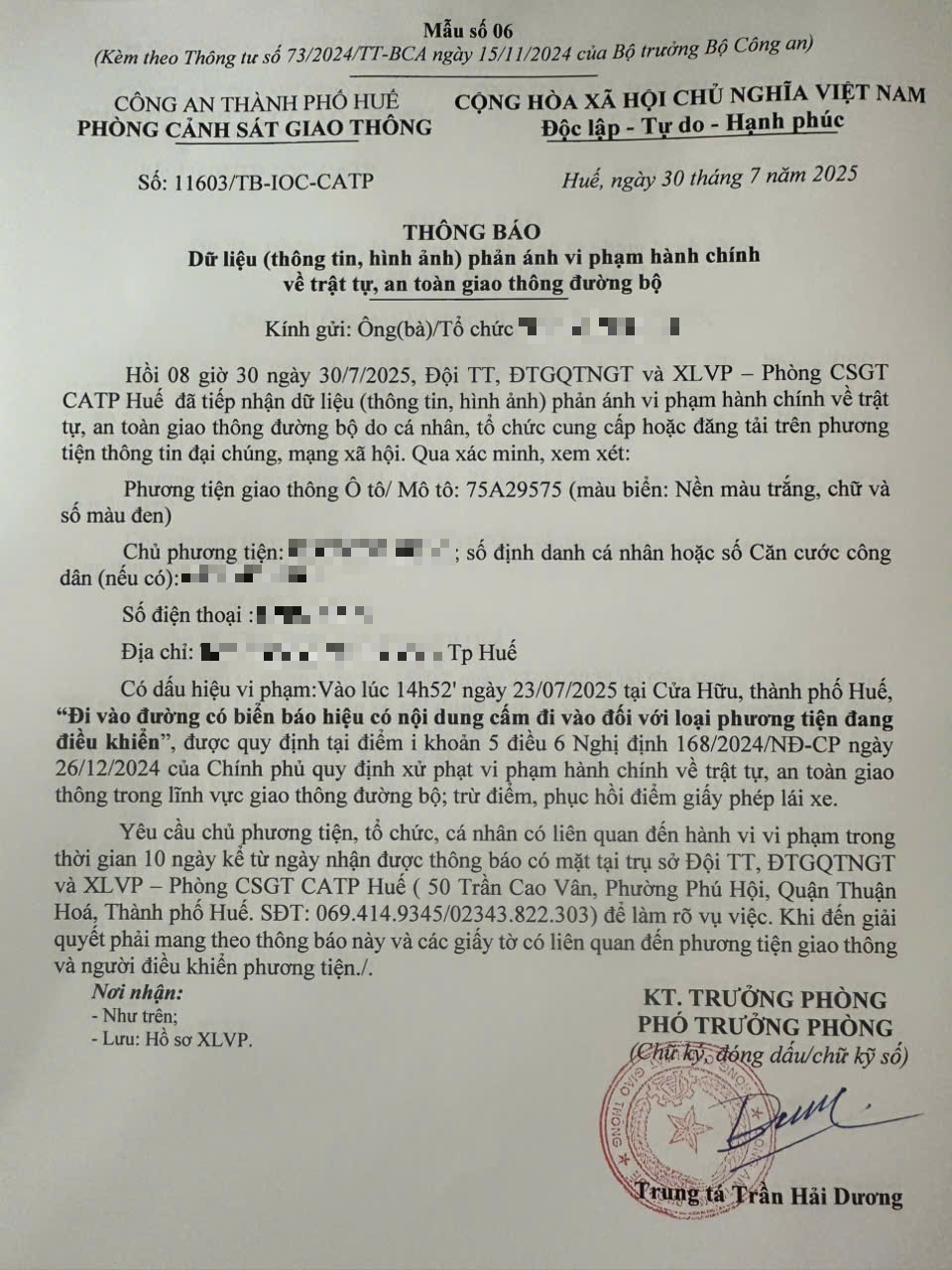 Vấn đề quý Ông/Bà phản ánh, Phòng Cảnh sát giao thông – Công an thành phố Huế đã kiểm tra và xin thông báo kết quả như sau: