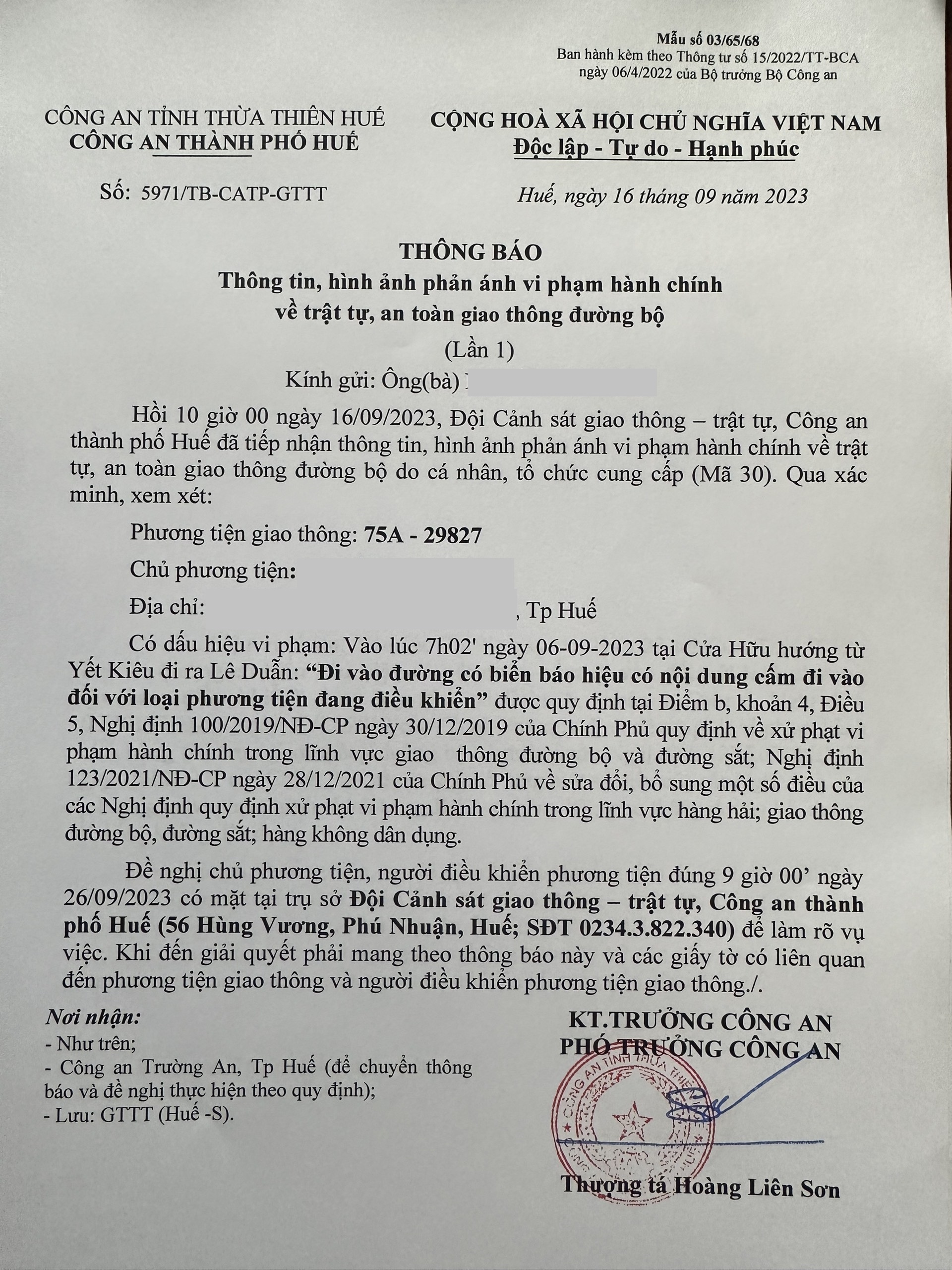 Công an thành phố cập nhật Quyết định xử phạt. (Đính kèm QĐ)