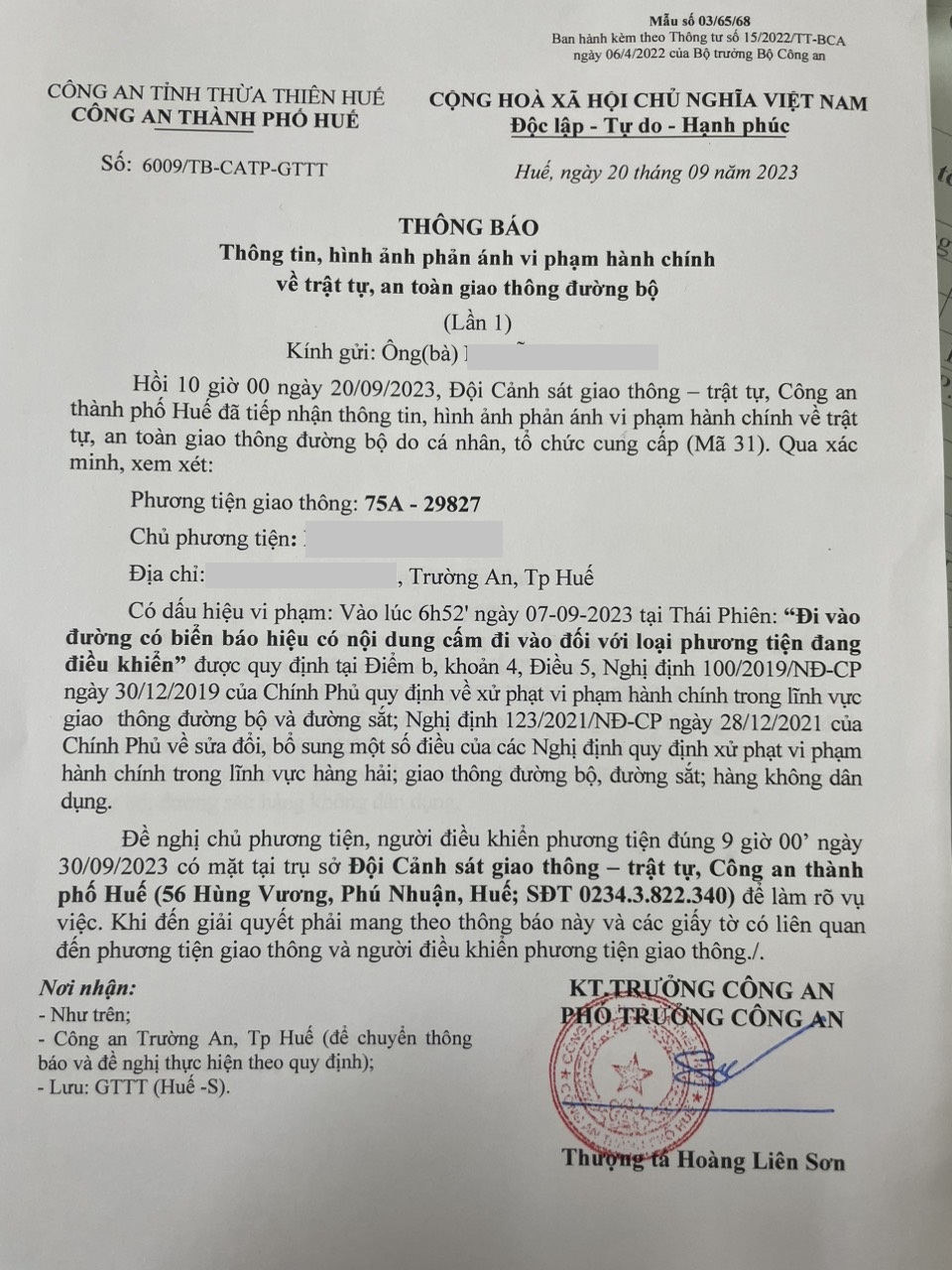 Vấn đề quý Ông/Bà phản ánh, Công an tỉnh đã chỉ đạo Công an thành phố Huế kiểm tra và xin thông báo kết quả xử lý như sau: