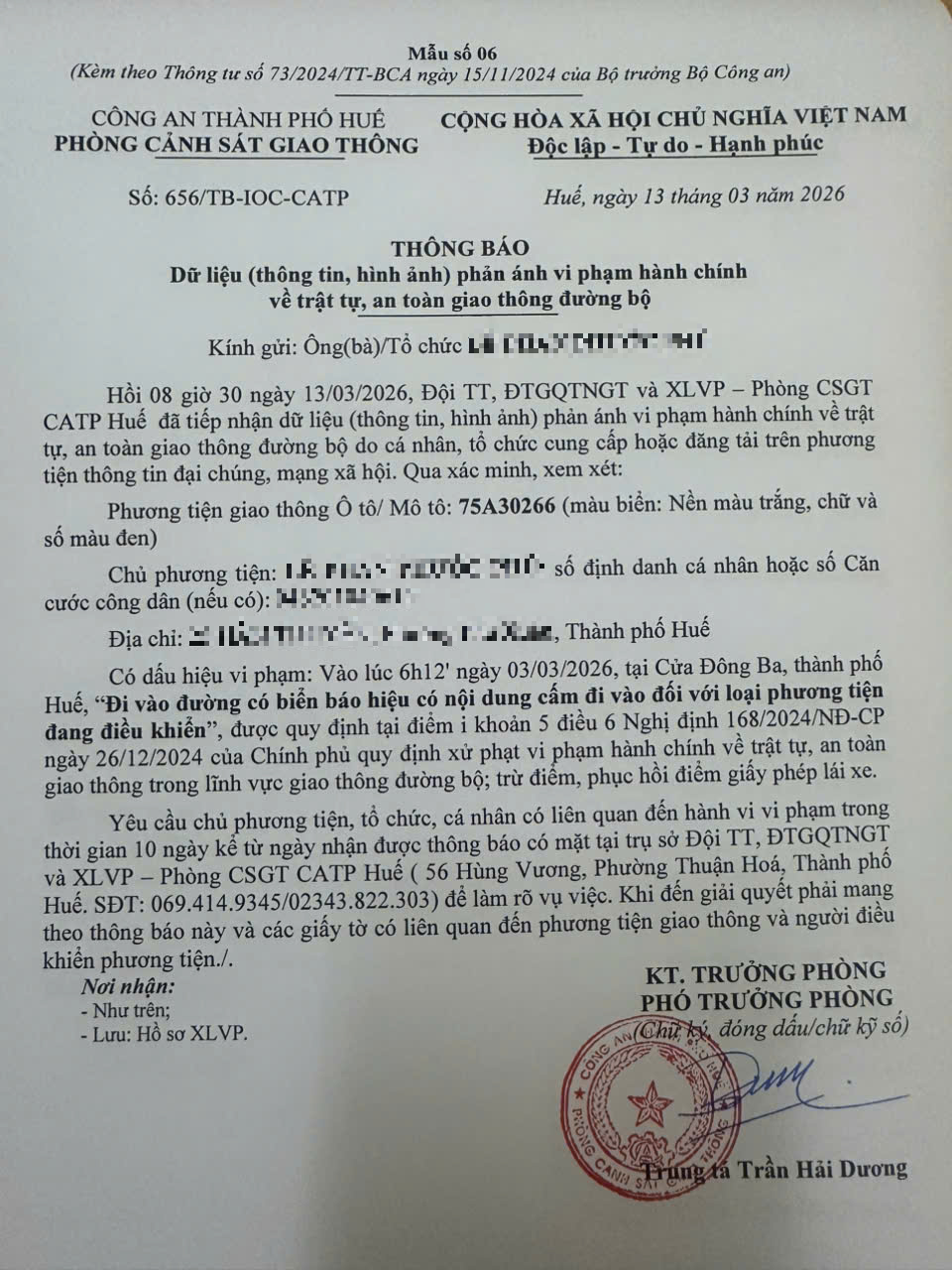 Vấn đề quý Ông/Bà phản ánh, Phòng Cảnh sát giao thông – Công an thành phố Huế đã kiểm tra và xin thông báo kết quả như sau: