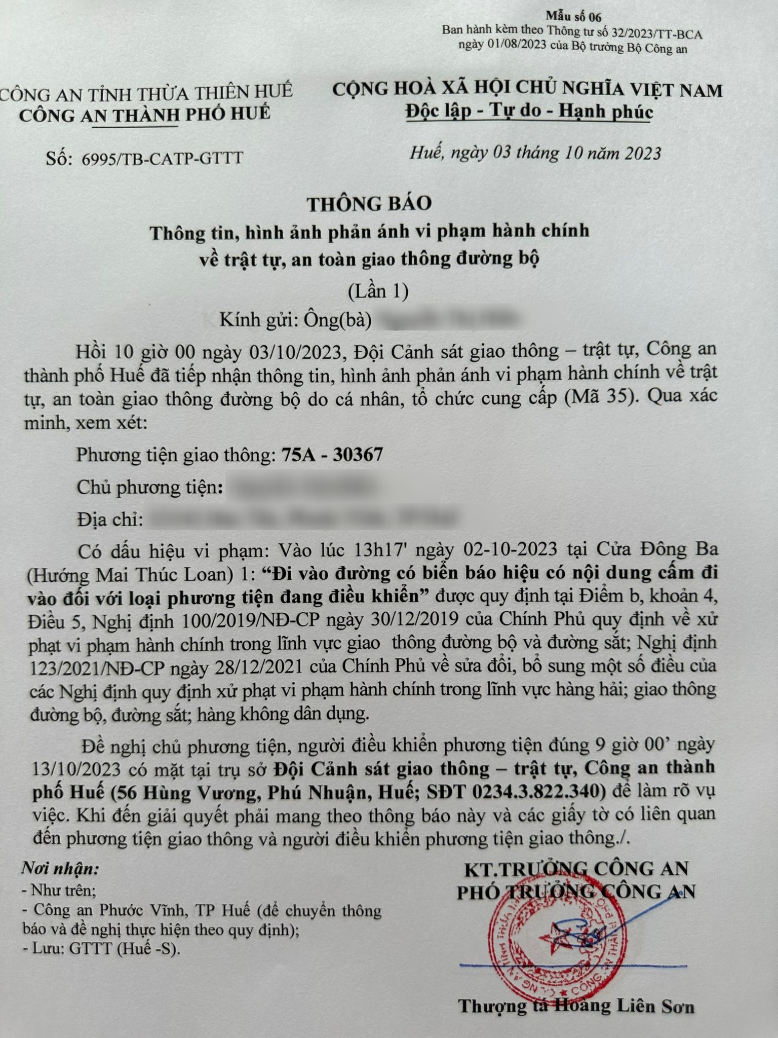 Vấn đề quý Ông/Bà phản ánh, Công an tỉnh đã chỉ đạo Công an thành phố Huế kiểm tra và xin thông báo kết quả như sau: