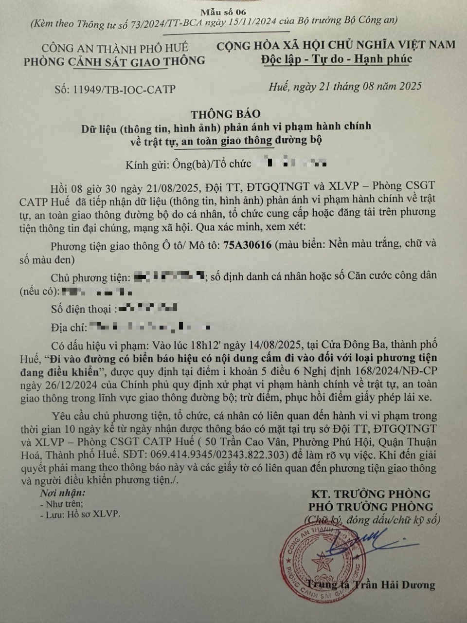 Vấn đề quý Ông/Bà phản ánh, Phòng Cảnh sát giao thông – Công an thành phố Huế đã kiểm tra và xin thông báo kết quả như sau: