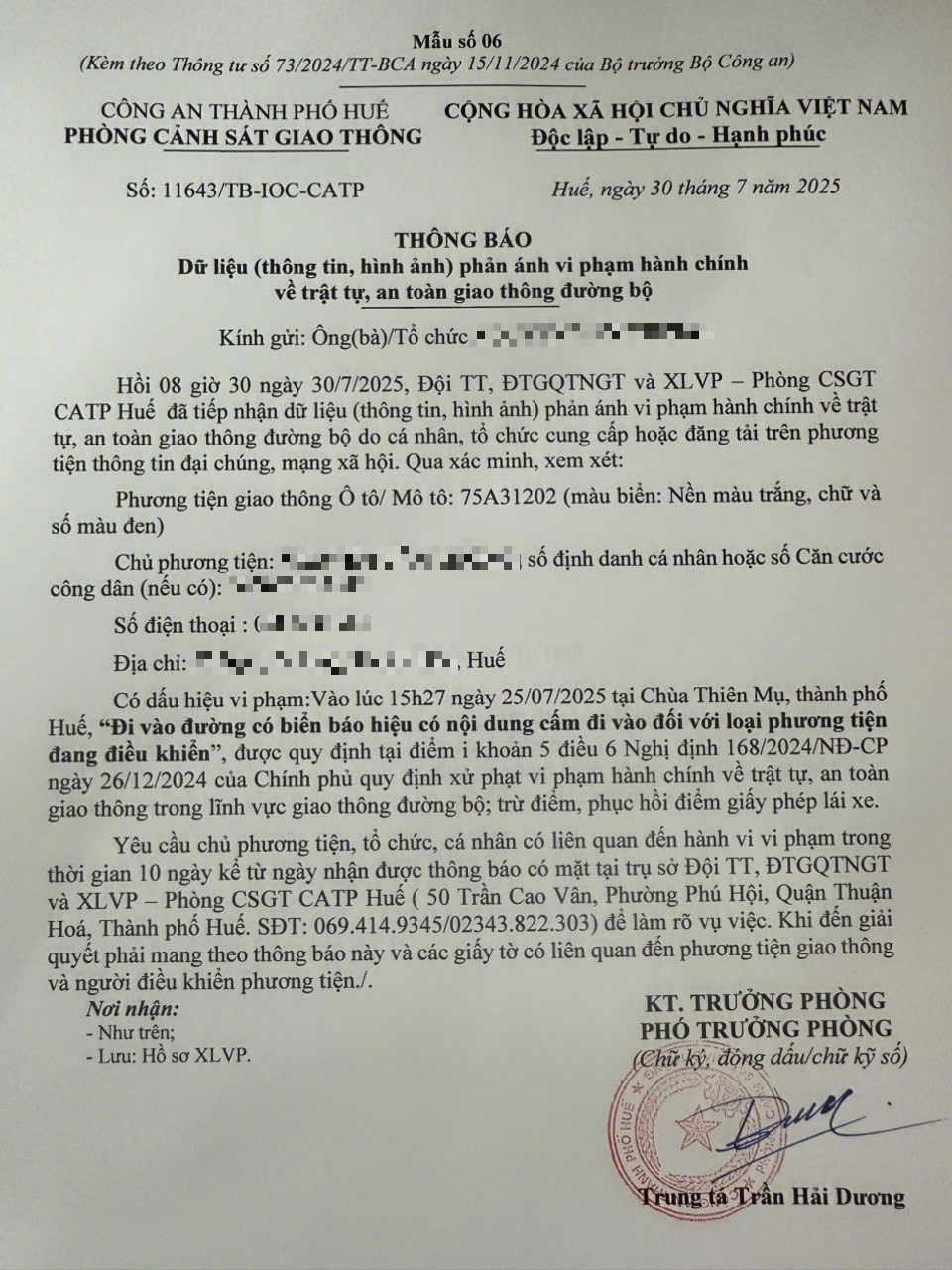 Vấn đề quý Ông/Bà phản ánh, Phòng Cảnh sát giao thông – Công an thành phố Huế đã kiểm tra và xin thông báo kết quả như sau: