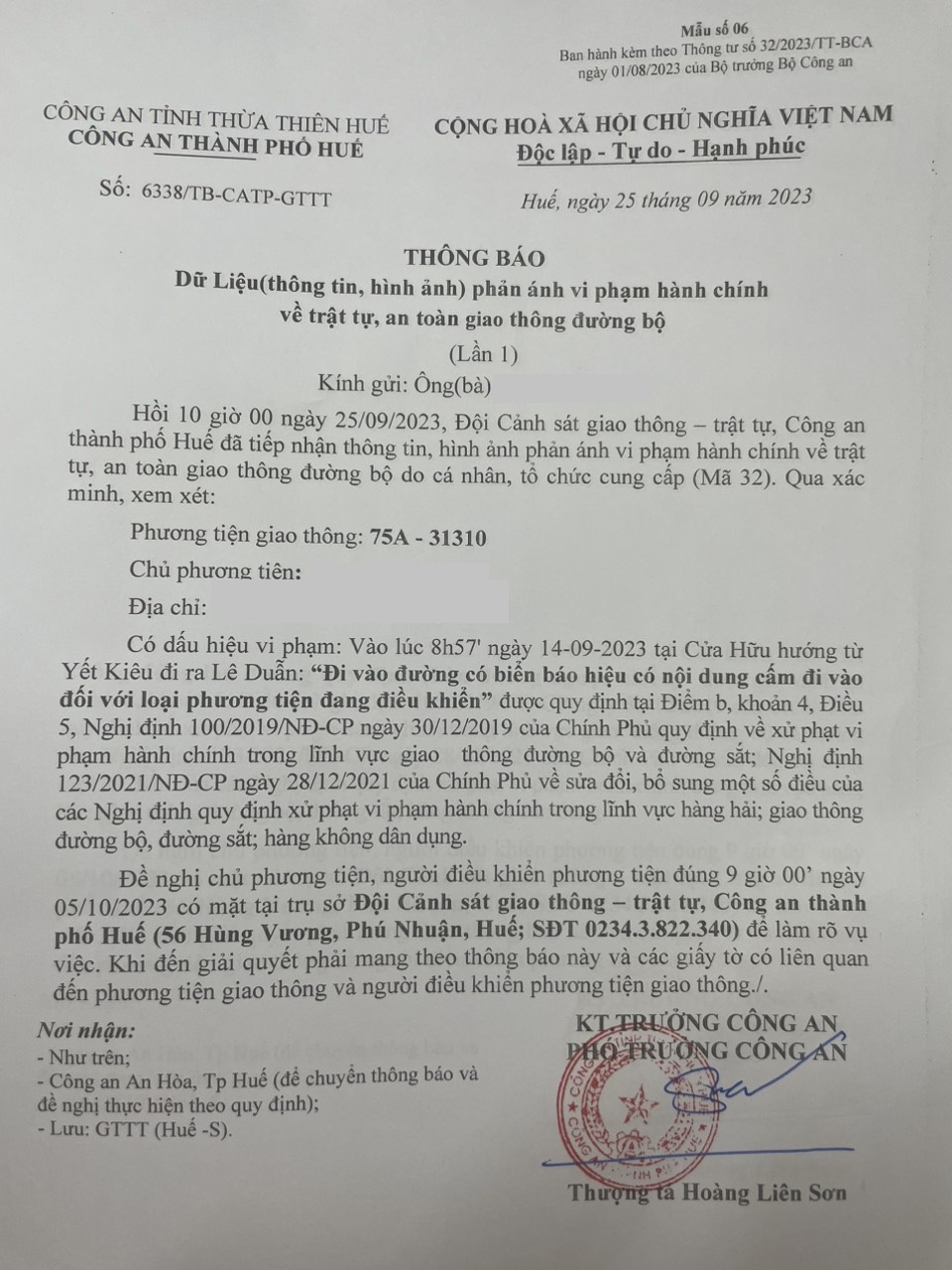 Vấn đề quý Ông/Bà phản ánh, Công an tỉnh đã chỉ đạo Công an thành phố Huế xác minh và xin thông báo kết quả như sau:
