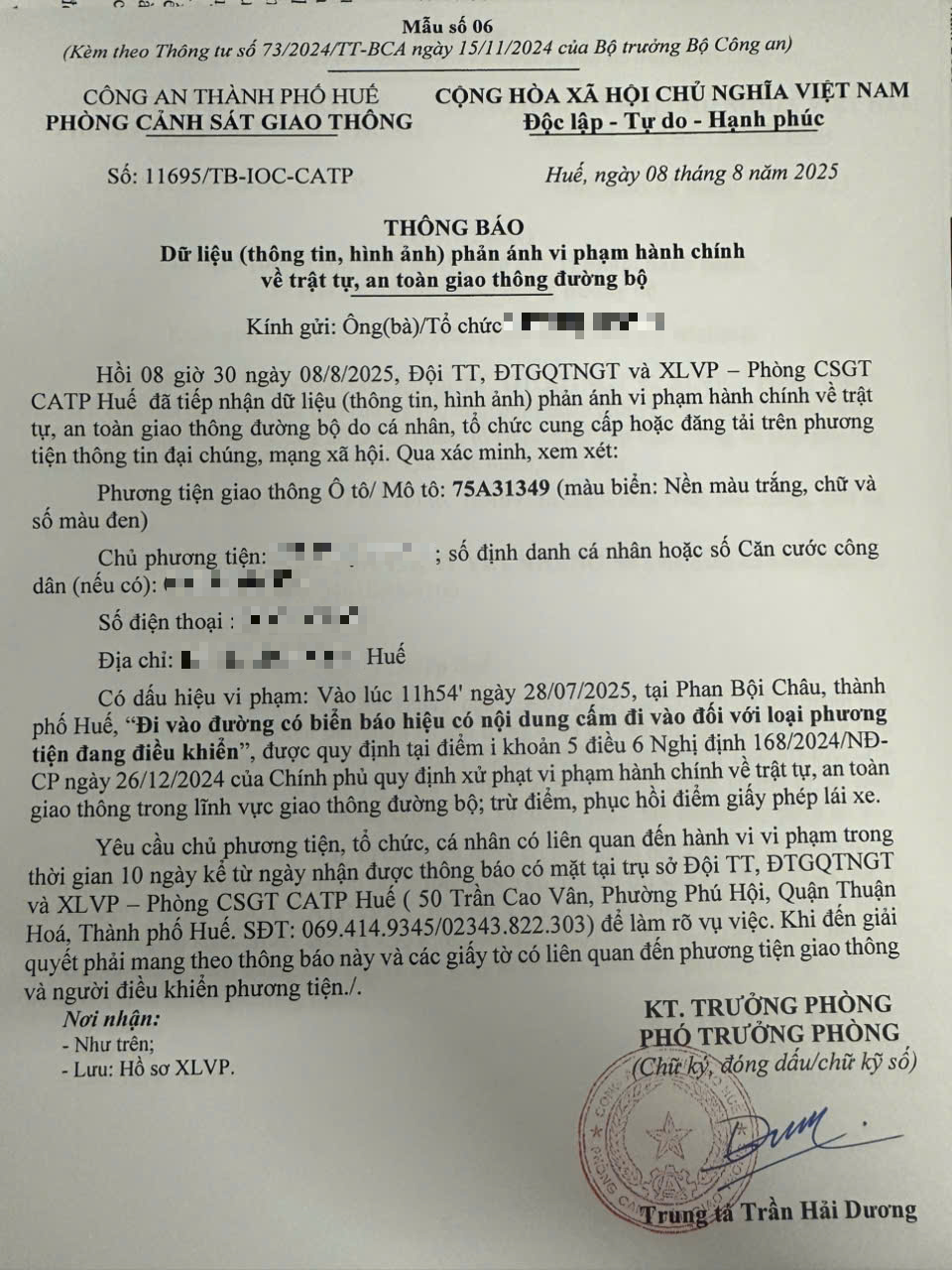 Vấn đề quý Ông/Bà phản ánh, Phòng Cảnh sát giao thông – Công an thành phố Huế đã kiểm tra và xin thông báo kết quả như sau: