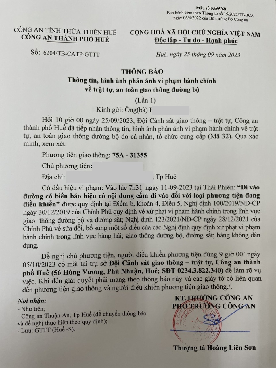Vấn đề Ông/Bà phản ánh, Công an tỉnh đã chỉ đạo Công an thành phố Huế xác minh và xin thông báo kết quả như sau: