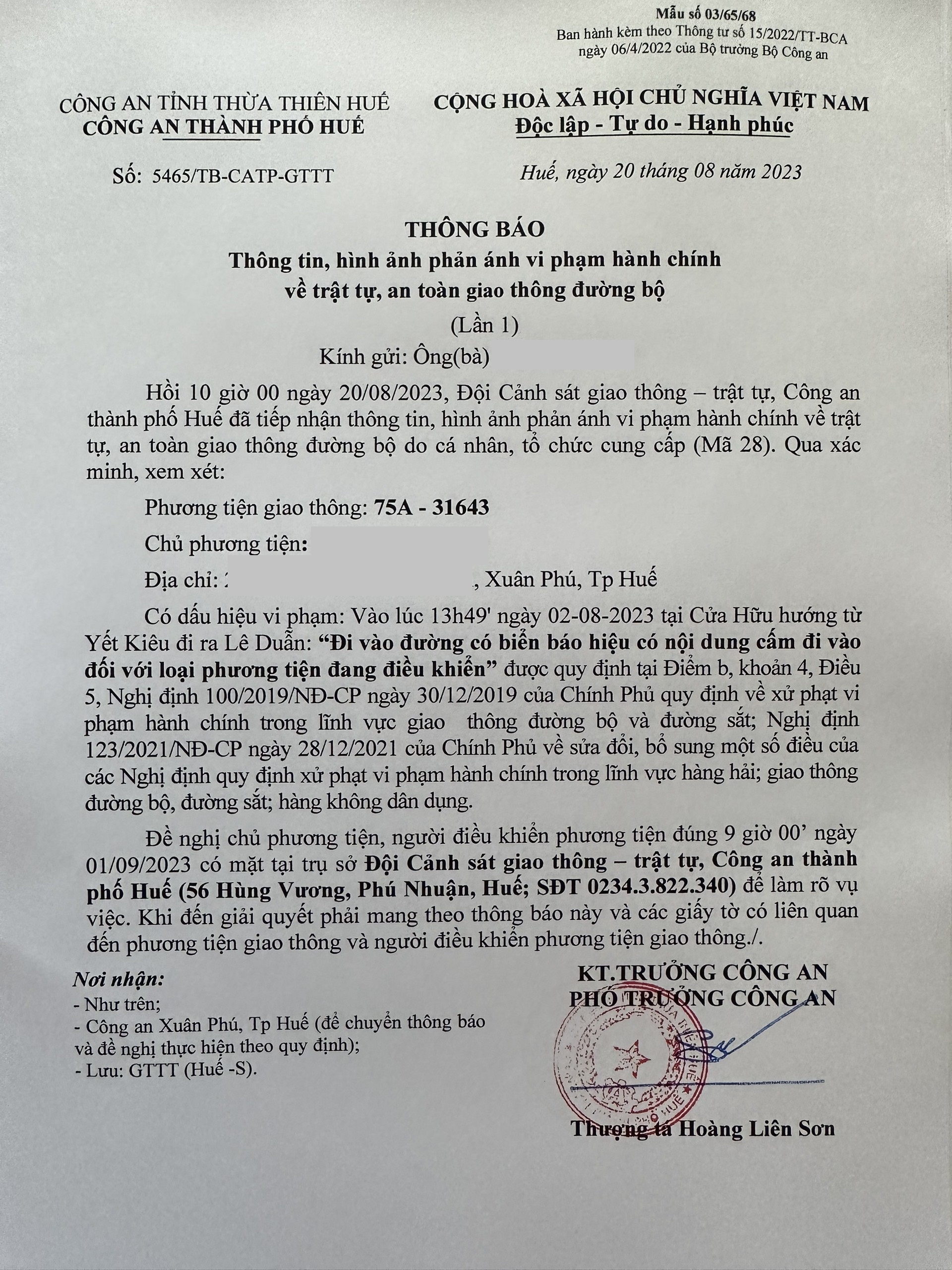 Vấn đề quý Ông/Bà phản ánh, Công an tỉnh đã chỉ đạo Công an thành phố Huế kiểm tra và xin thông báo kết quả xử lý như sau: