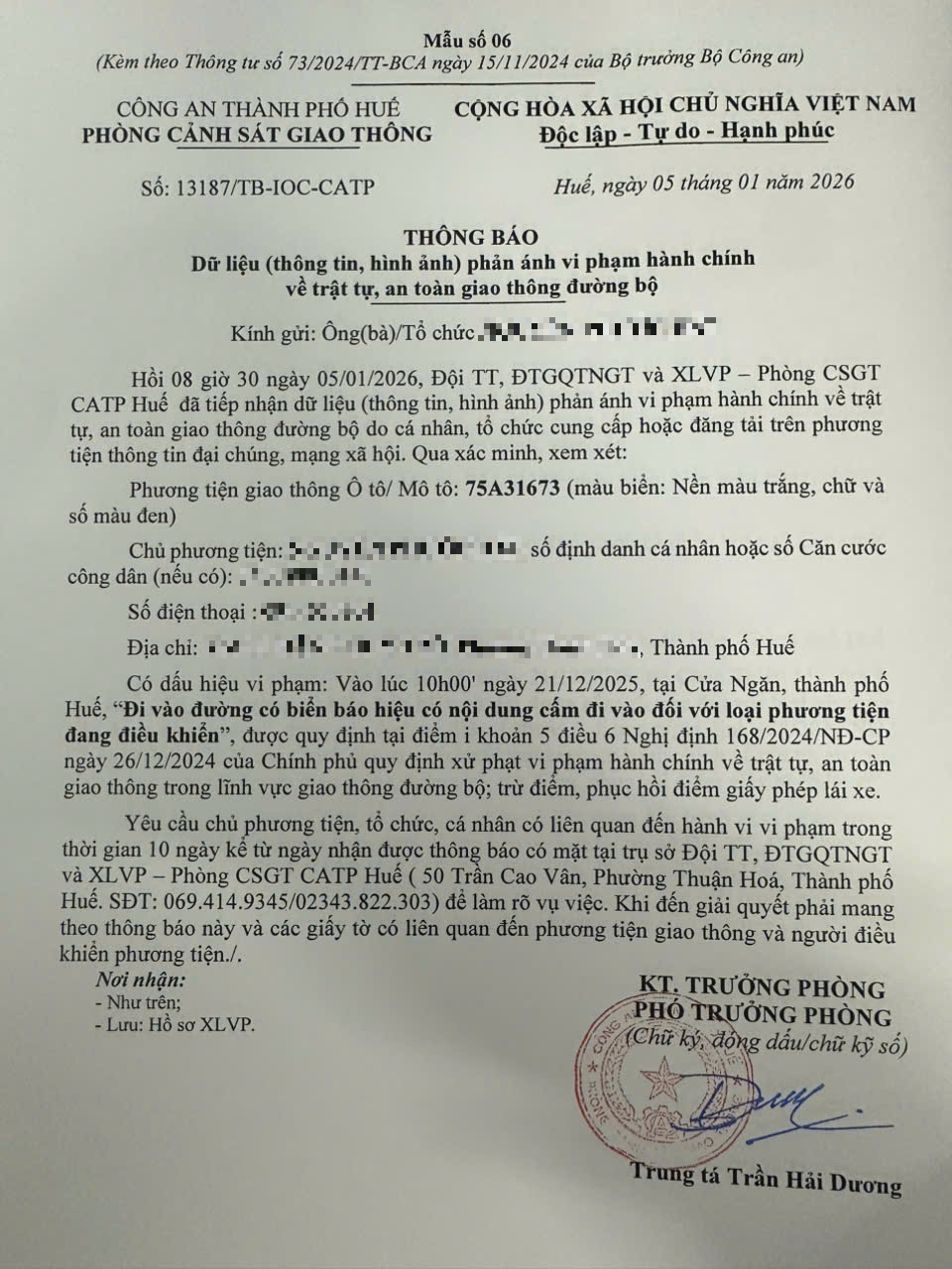 Vấn đề quý Ông/Bà phản ánh, Phòng Cảnh sát giao thông – Công an thành phố Huế đã kiểm tra và xin thông báo kết quả như sau: