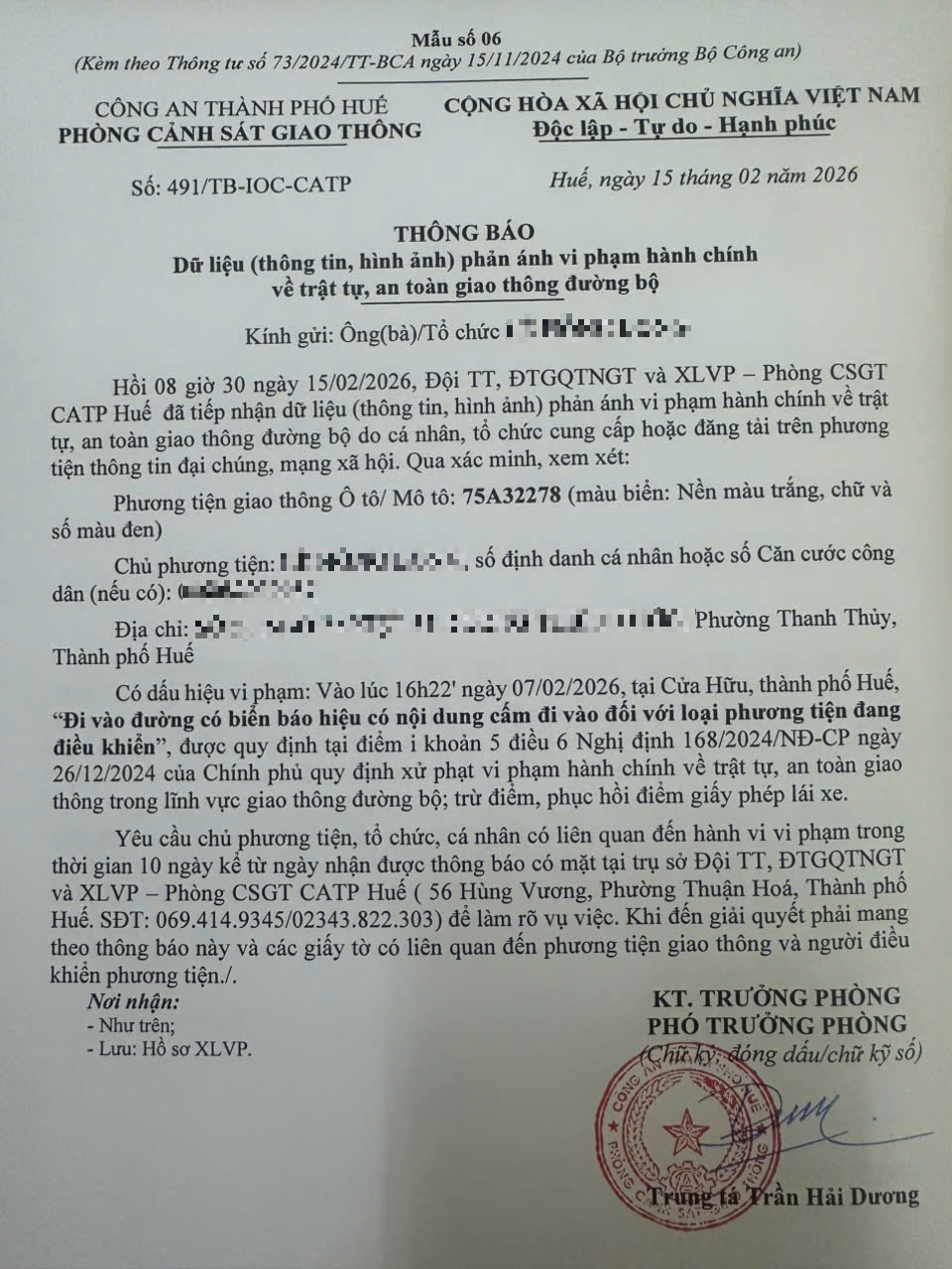 Vấn đề quý Ông/Bà phản ánh, Phòng Cảnh sát giao thông – Công an thành phố Huế đã kiểm tra và xin thông báo kết quả như sau: