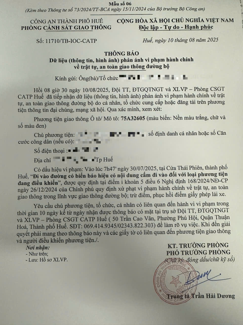 Vấn đề quý Ông/Bà phản ánh, Phòng Cảnh sát giao thông – Công an thành phố Huế đã kiểm tra và xin thông báo kết quả như sau: