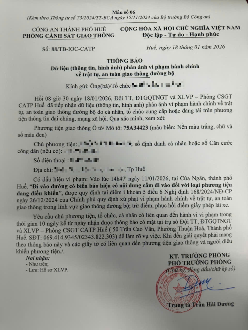 Vấn đề quý Ông/Bà phản ánh, Phòng Cảnh sát giao thông – Công an thành phố Huế đã kiểm tra và xin thông báo kết quả như sau: