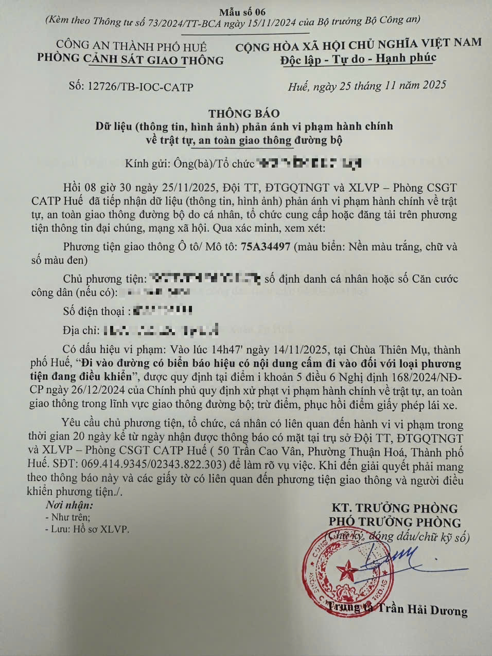 Vấn đề quý Ông/Bà phản ánh, Phòng Cảnh sát giao thông – Công an thành phố Huế đã kiểm tra và xin thông báo kết quả như sau:
