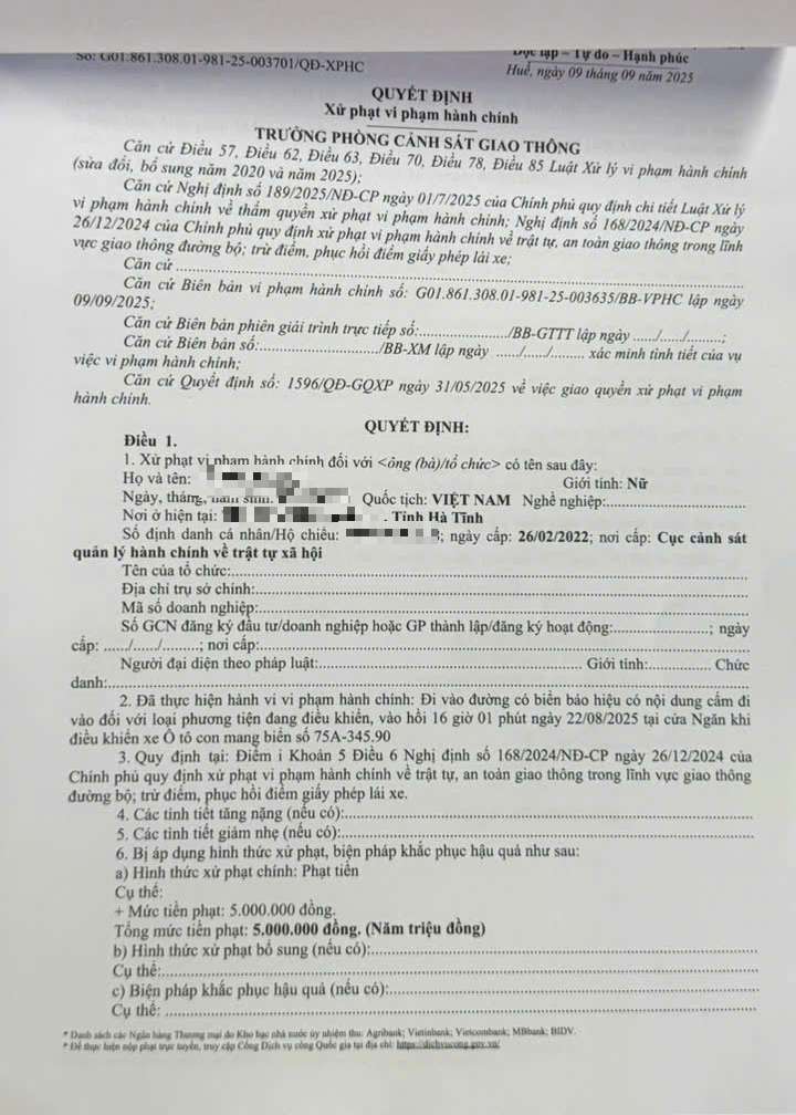 Phòng Cảnh sát giao thông đã lập biên bản vi phạm hành chính và ra Quyết định xử phạt đối với chủ phương tiện. (Đính kèm Quyết định).