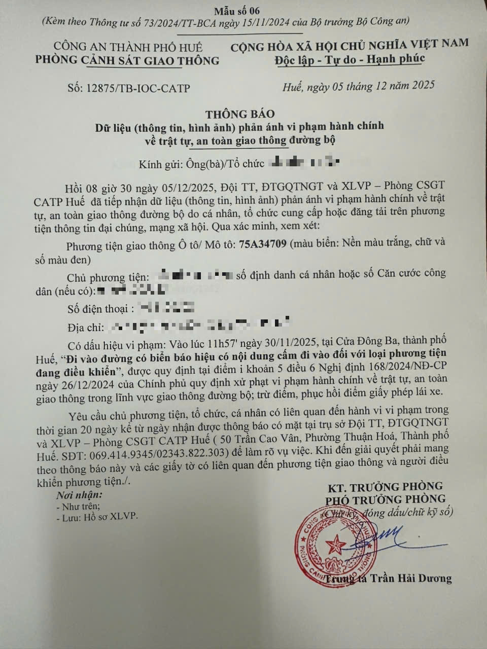 Vấn đề quý Ông/Bà phản ánh, Phòng Cảnh sát giao thông – Công an thành phố Huế đã kiểm tra và xin thông báo kết quả như sau:
