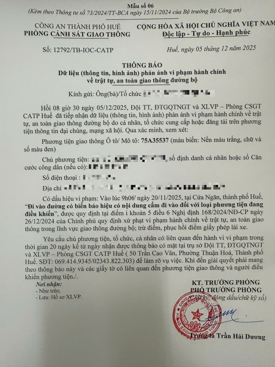 Vấn đề quý Ông/Bà phản ánh, Phòng Cảnh sát giao thông – Công an thành phố Huế đã kiểm tra và xin thông báo kết quả như sau: