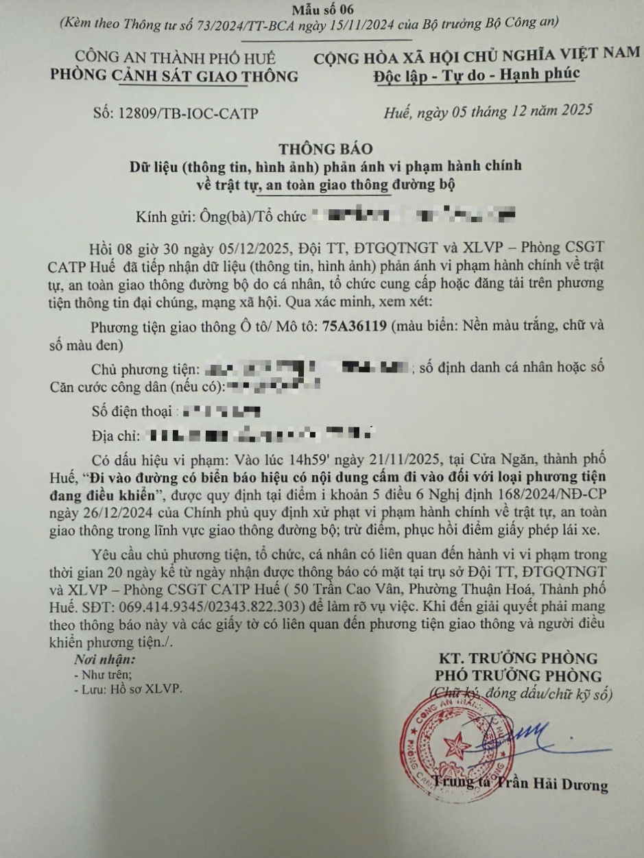 Vấn đề quý Ông/Bà phản ánh, Phòng Cảnh sát giao thông – Công an thành phố Huế đã kiểm tra và xin thông báo kết quả như sau: