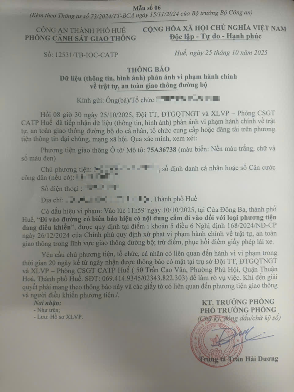 Vấn đề quý Ông/Bà phản ánh, Phòng Cảnh sát giao thông – Công an thành phố Huế đã kiểm tra và xin thông báo kết quả như sau: