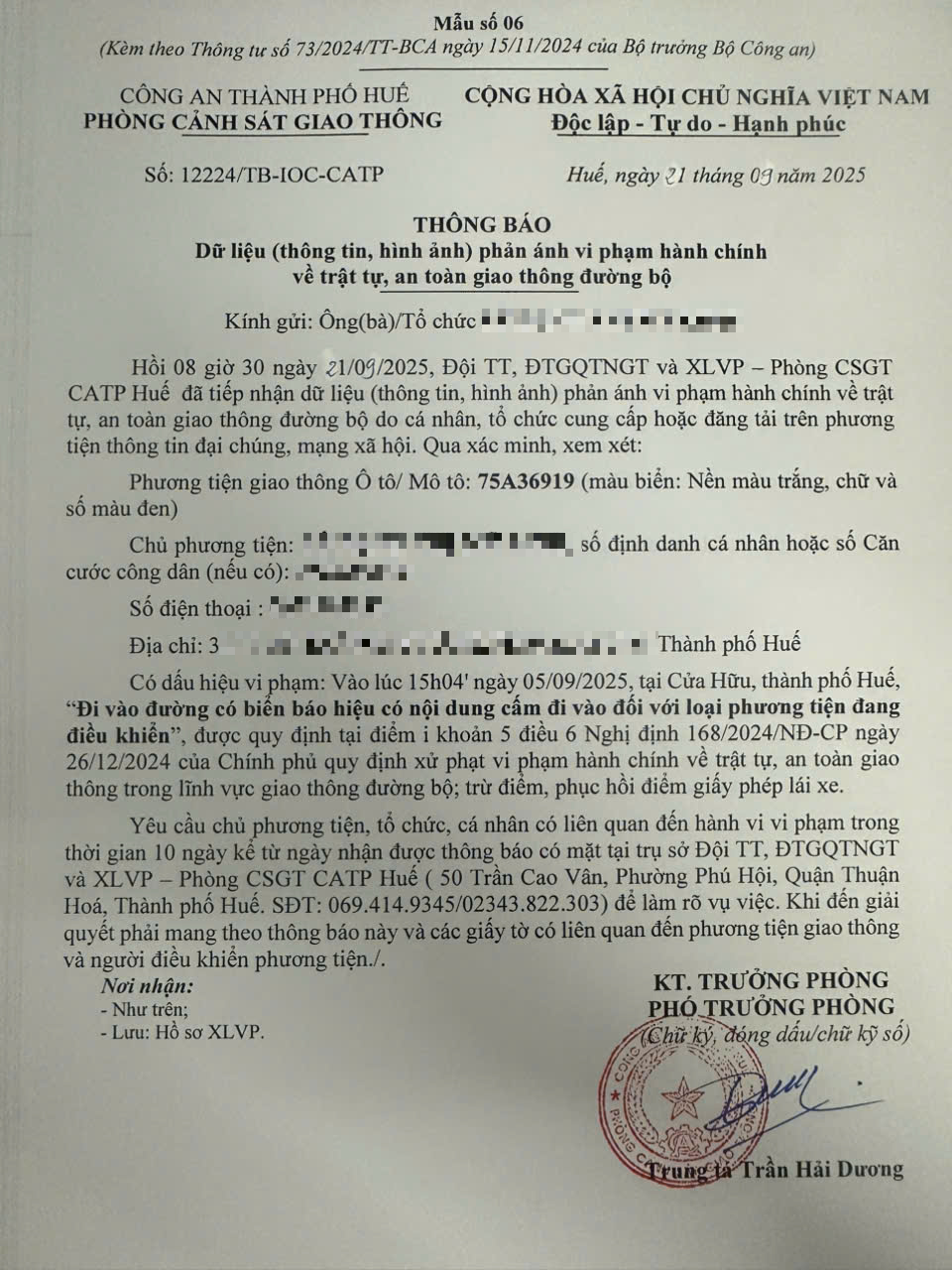 Vấn đề quý Ông/Bà phản ánh, Phòng Cảnh sát giao thông – Công an thành phố Huế đã kiểm tra và xin thông báo kết quả như sau: