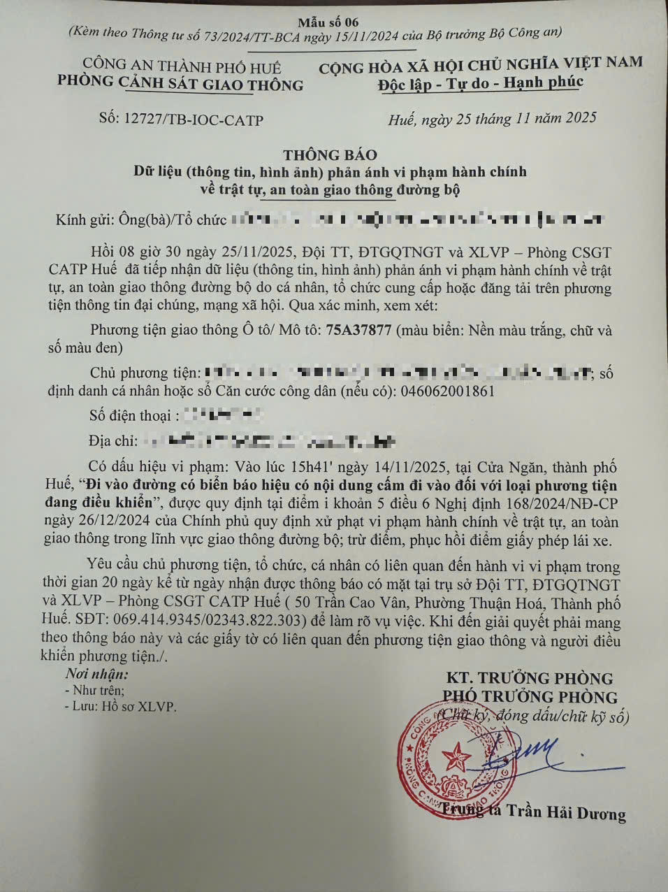 Vấn đề quý Ông/Bà phản ánh, Phòng Cảnh sát giao thông – Công an thành phố Huế đã kiểm tra và xin thông báo kết quả như sau: