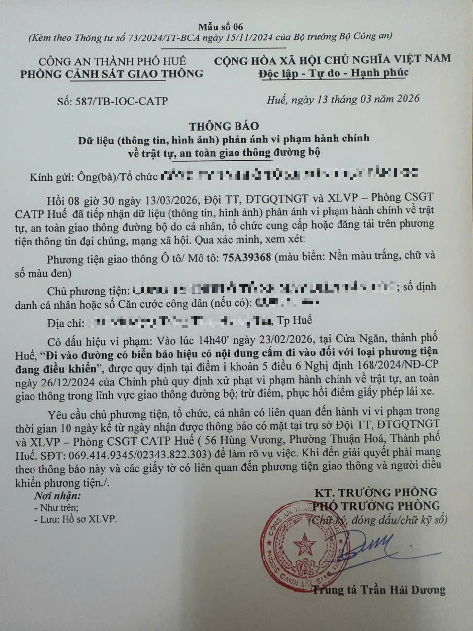 Vấn đề quý Ông/Bà phản ánh, Phòng Cảnh sát giao thông – Công an thành phố Huế đã kiểm tra và xin thông báo kết quả như sau:
