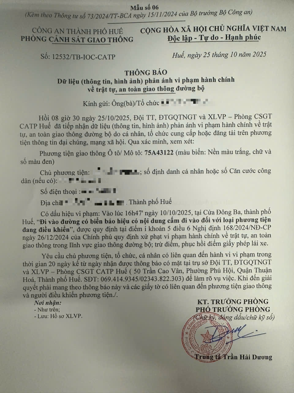 Vấn đề quý Ông/Bà phản ánh, Phòng Cảnh sát giao thông – Công an thành phố Huế đã kiểm tra và xin thông báo kết quả như sau: