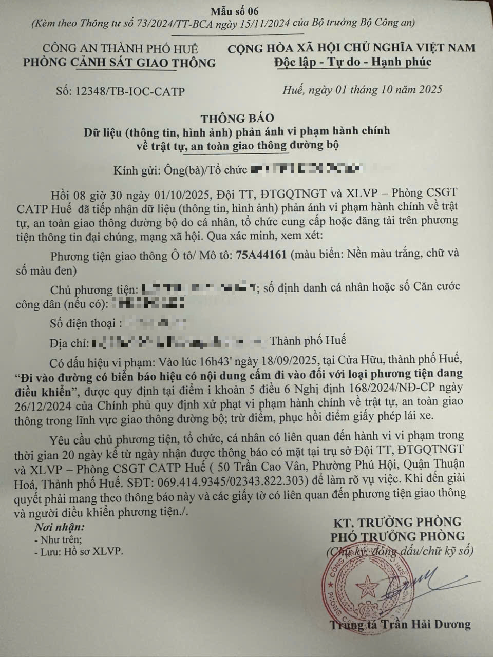 Vấn đề quý Ông/Bà phản ánh, Phòng Cảnh sát giao thông – Công an thành phố Huế đã kiểm tra và xin thông báo kết quả như sau: