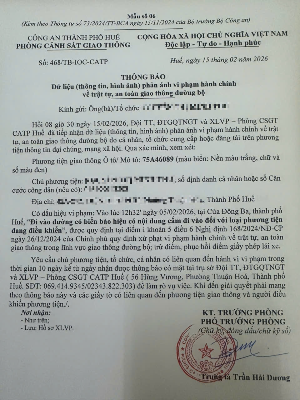 Vấn đề quý Ông/Bà phản ánh, Phòng Cảnh sát giao thông – Công an thành phố Huế đã kiểm tra và xin thông báo kết quả như sau:
