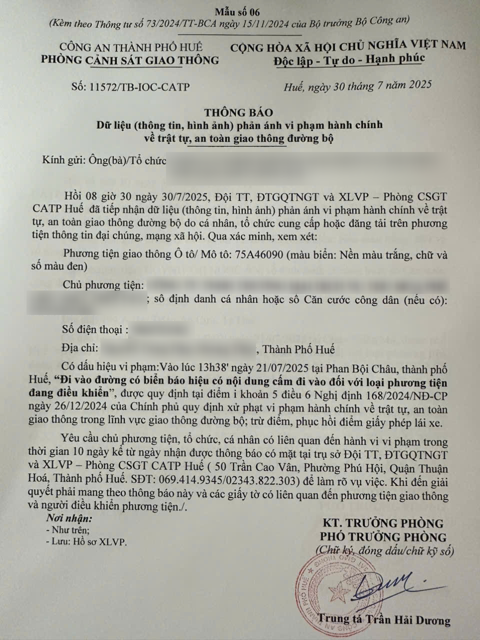 Vấn đề quý Ông/Bà phản ánh, Phòng Cảnh sát giao thông – Công an thành phố Huế đã kiểm tra và xin thông báo kết quả như sau: