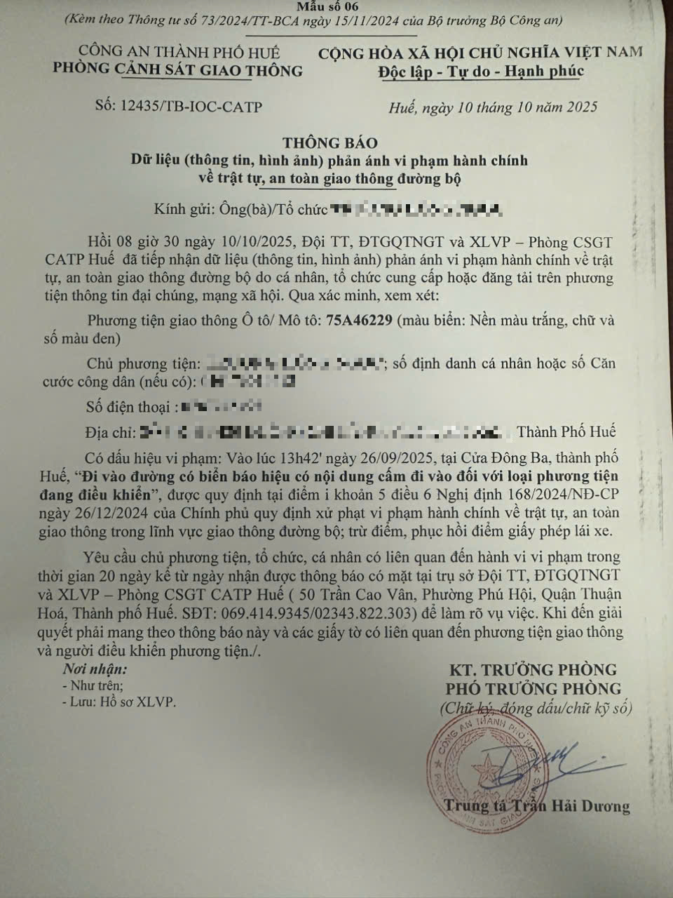 Vấn đề quý Ông/Bà phản ánh, Phòng Cảnh sát giao thông – Công an thành phố Huế đã kiểm tra và xin thông báo kết quả như sau: