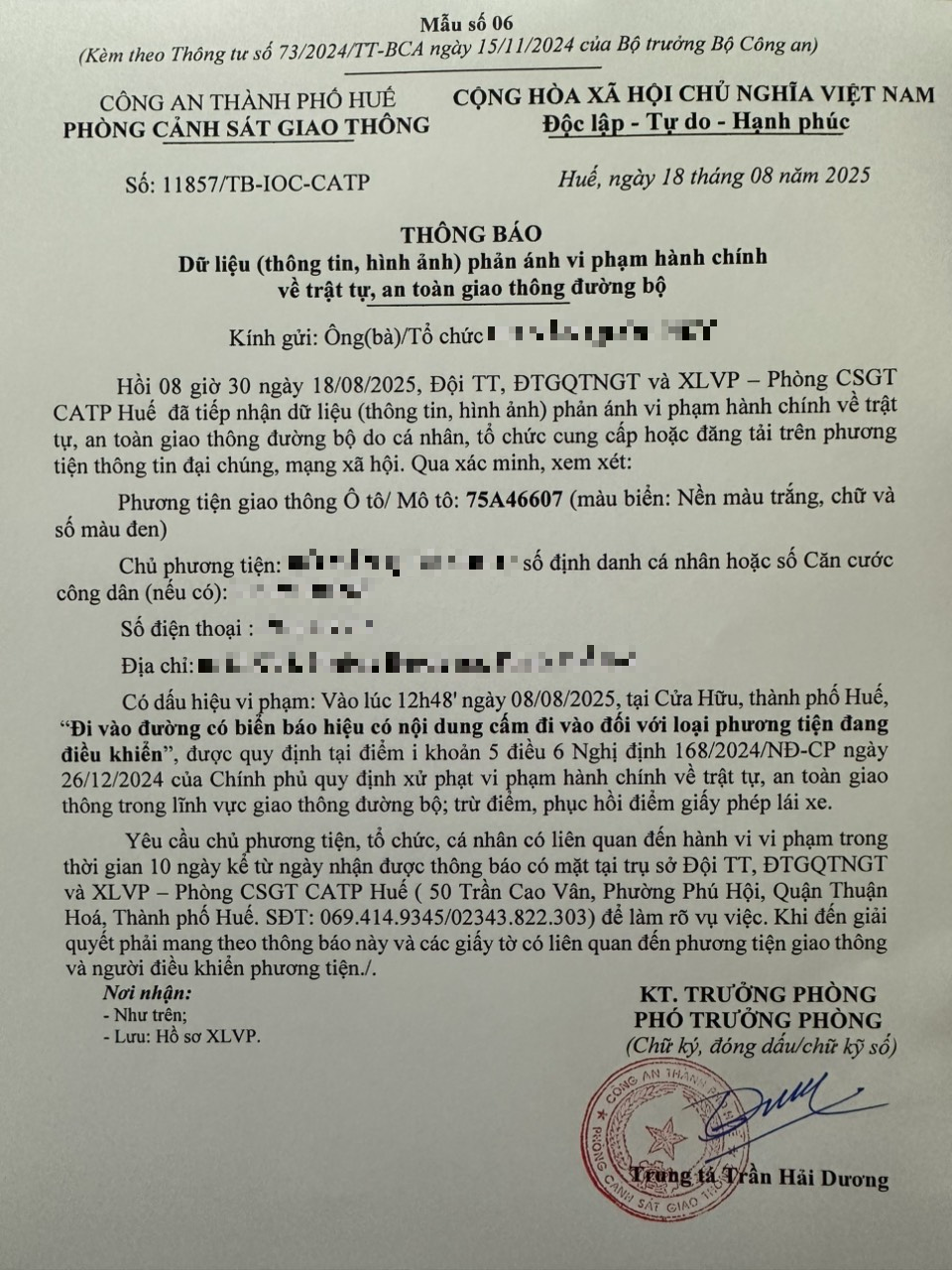 Vấn đề quý Ông/Bà phản ánh, Phòng Cảnh sát giao thông – Công an thành phố Huế đã kiểm tra và xin thông báo kết quả như sau: